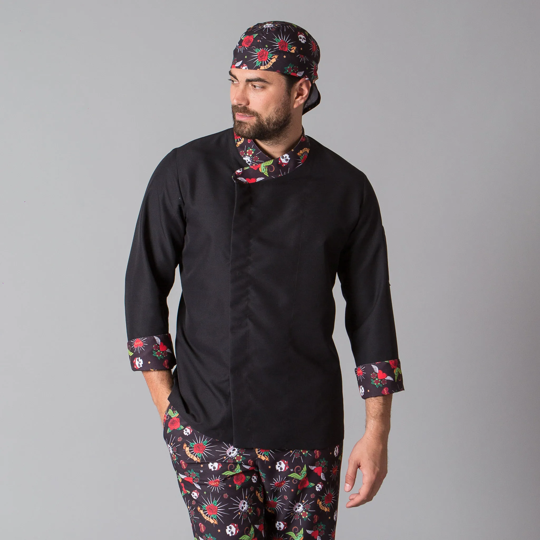Scegliete la giacca da cucina unisex AYALA per distinguervi nel settore della ristorazione e fare una dichiarazione audace. Il suo design moderno e i dettagli con stampa a teschio si adattano perfettamente alla scena culinaria di oggi, permettendovi di distinguervi e di fare un’impressione duratura sui vostri clienti.