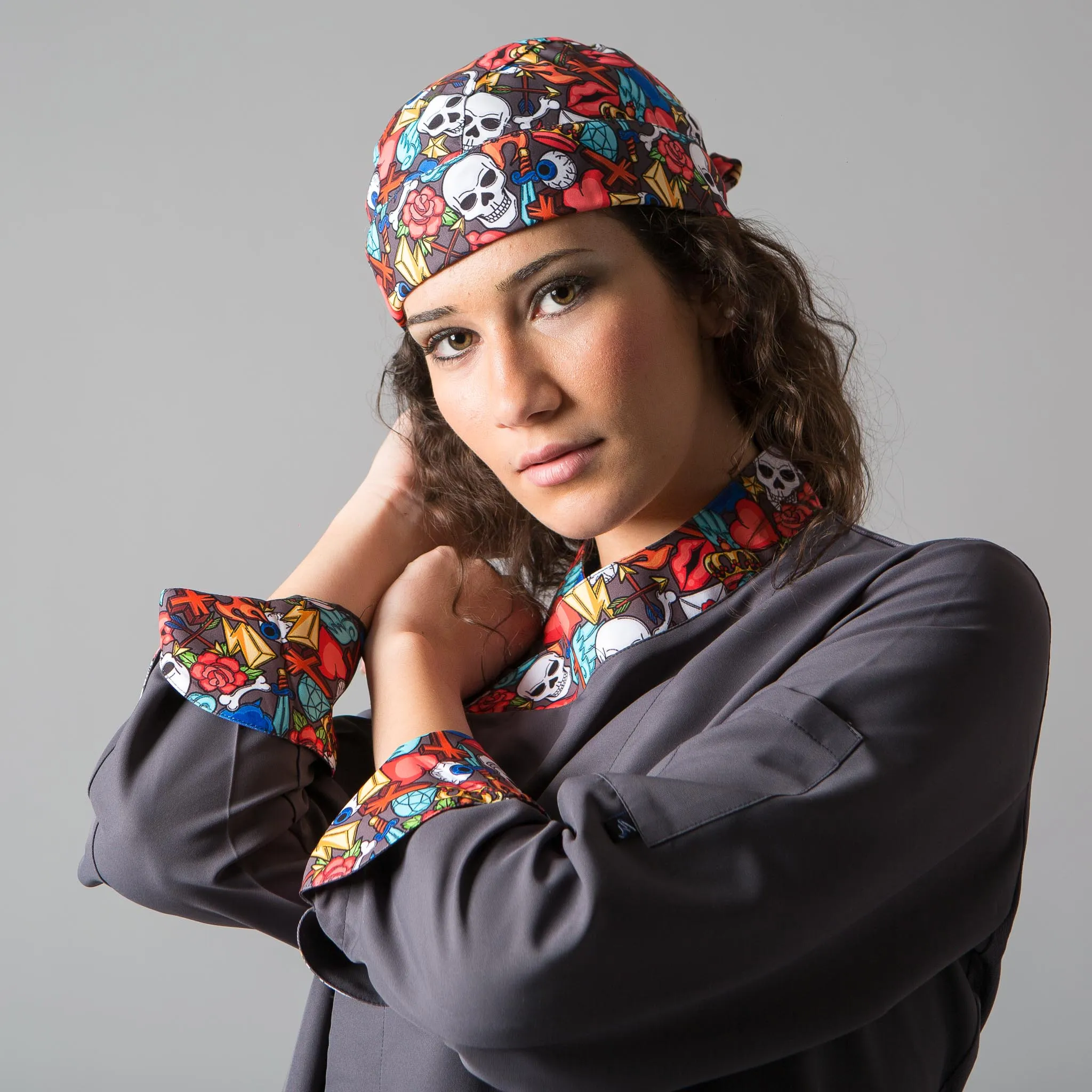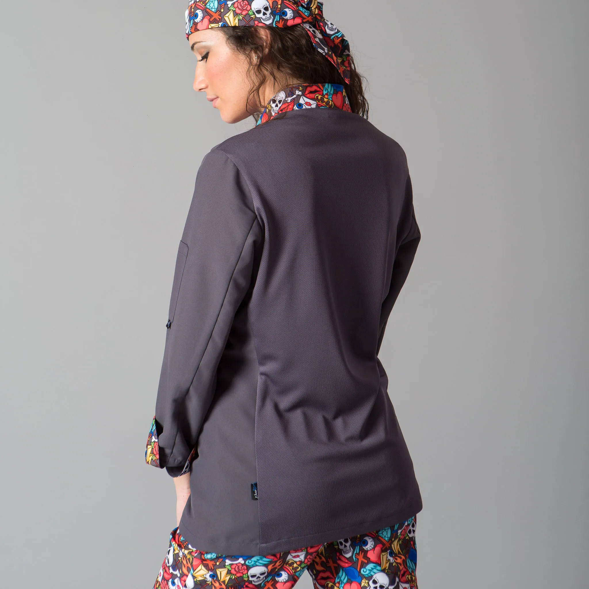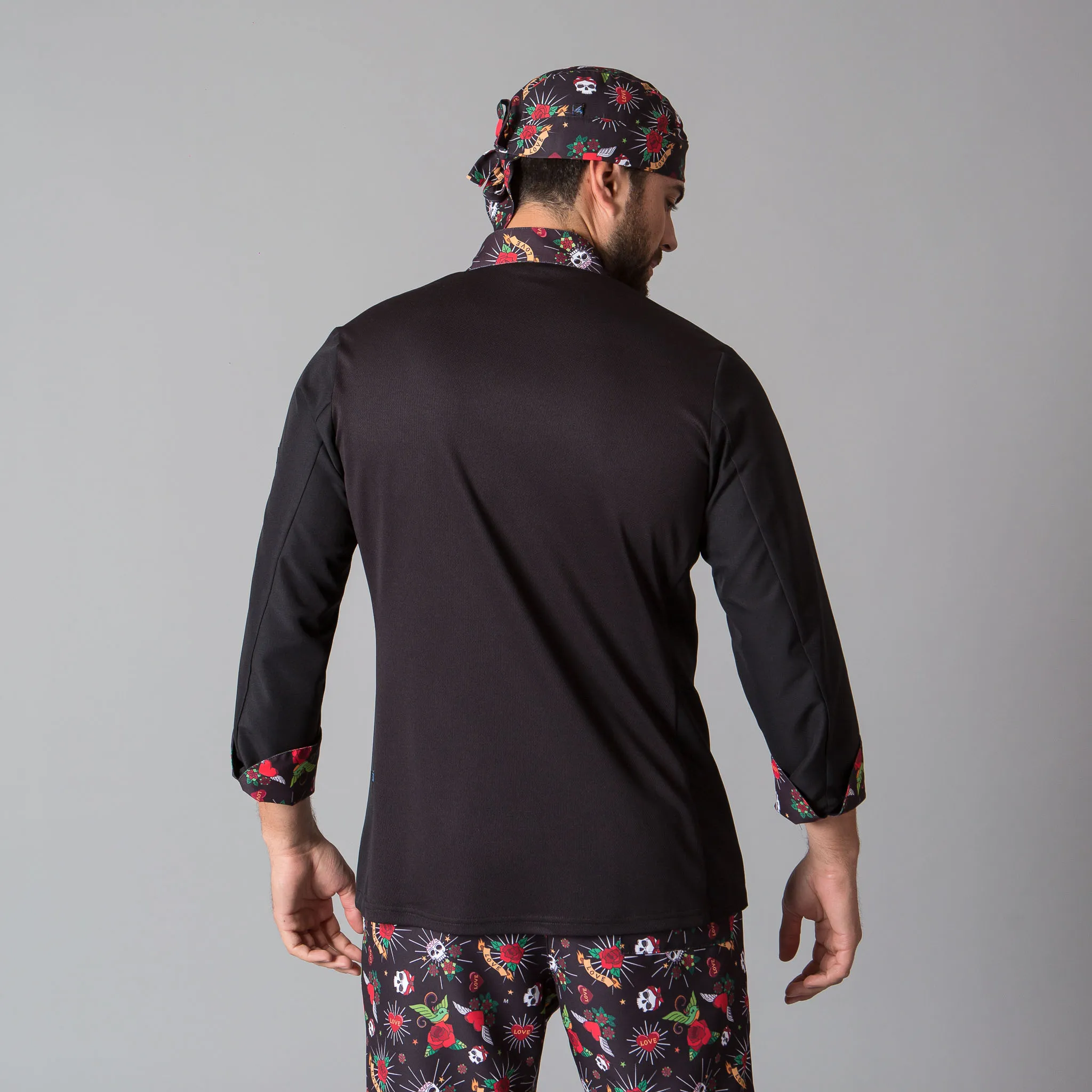 La giacca unisex AYALA si distingue per il suo design moderno ed elegante. I dettagli del teschio stampato sul colletto e sui polsini aggiungono un tocco di originalità e stile alla vostra uniforme.