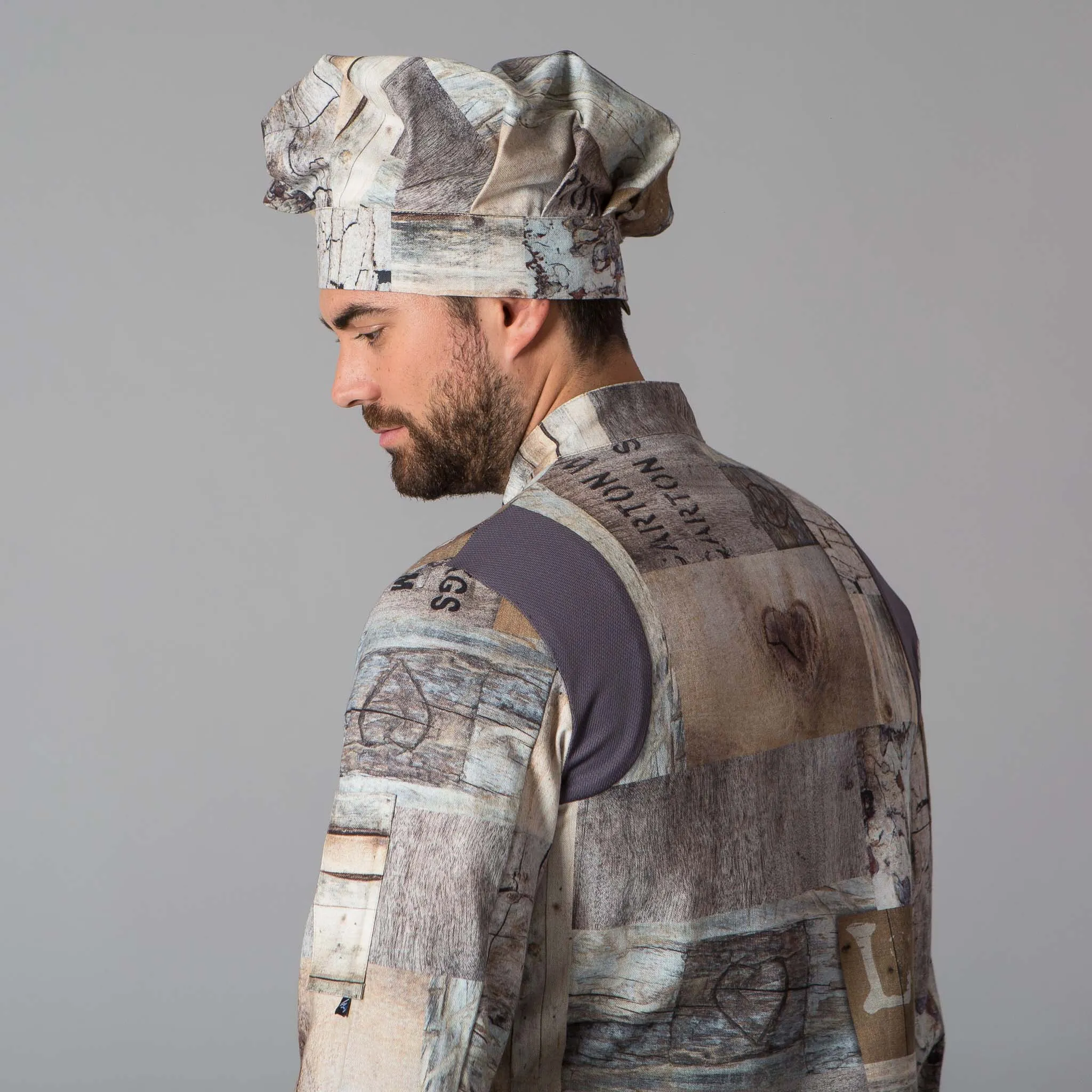 La giacca è caratterizzata da un design con stampa su legno, che aggiunge un tocco di natura e originalità alla vostra uniforme. Questo design unico permette al personale di distinguersi nell’ambiente di lavoro.