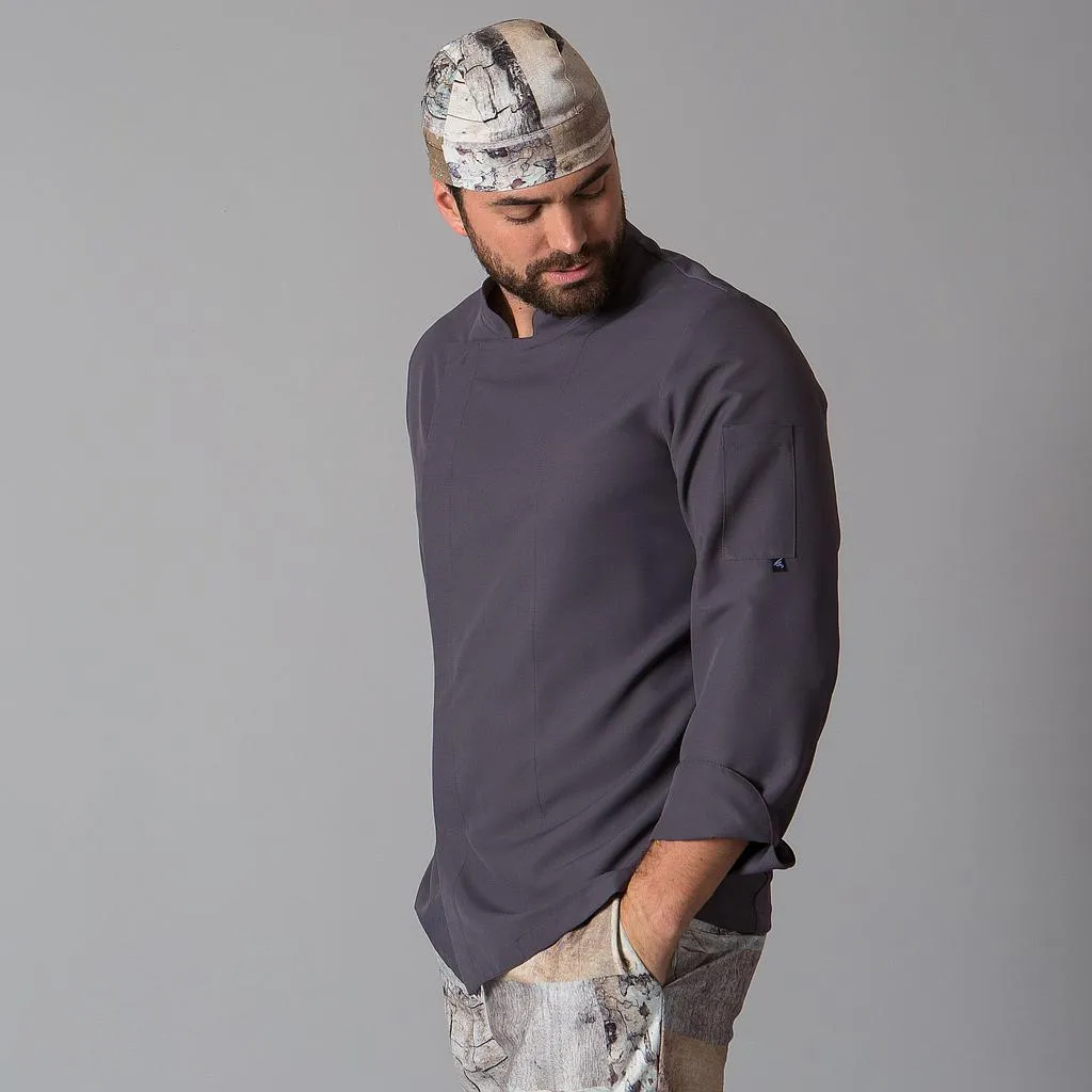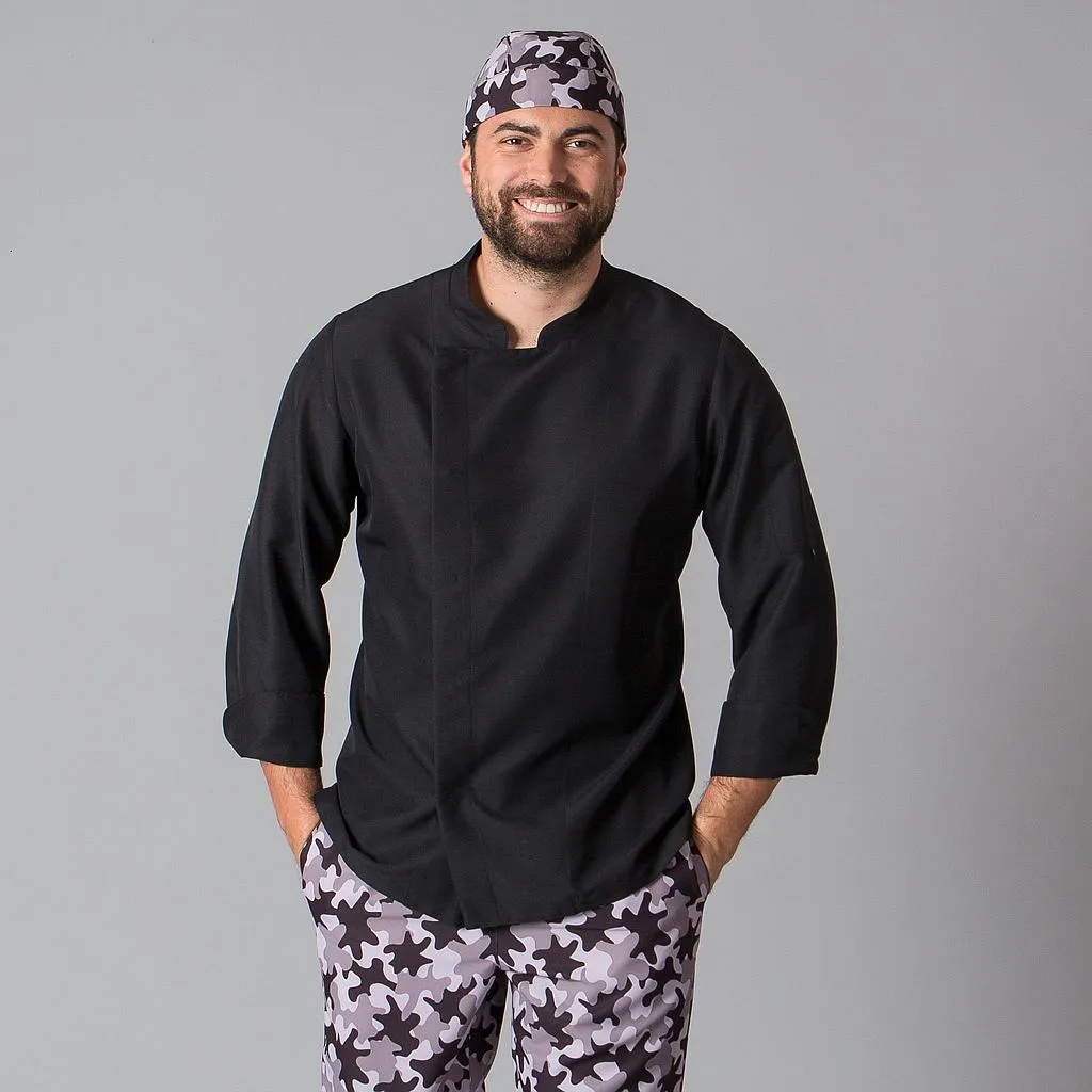 La giacca da cucina da uomo VIDAL presenta un design elegante con maniche lunghe, colletto mao e chiusura incrociata con bottoni a pressione nascosti. Il colletto mao aggiunge un tocco di stile distintivo, mentre i polsini risvoltati aggiungono comfort e una vestibilità sicura.