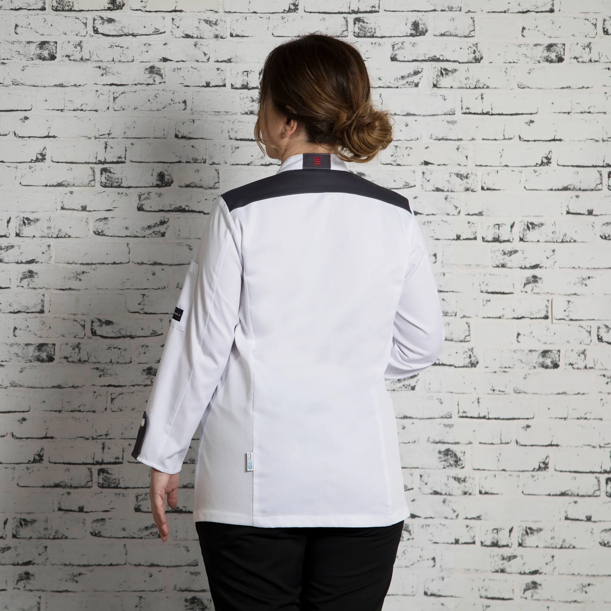 Questi dettagli consentono una vestibilità comoda e sicura, facilitando i movimenti e il comfort durante le lunghe giornate di lavoro in cucina o in sala.