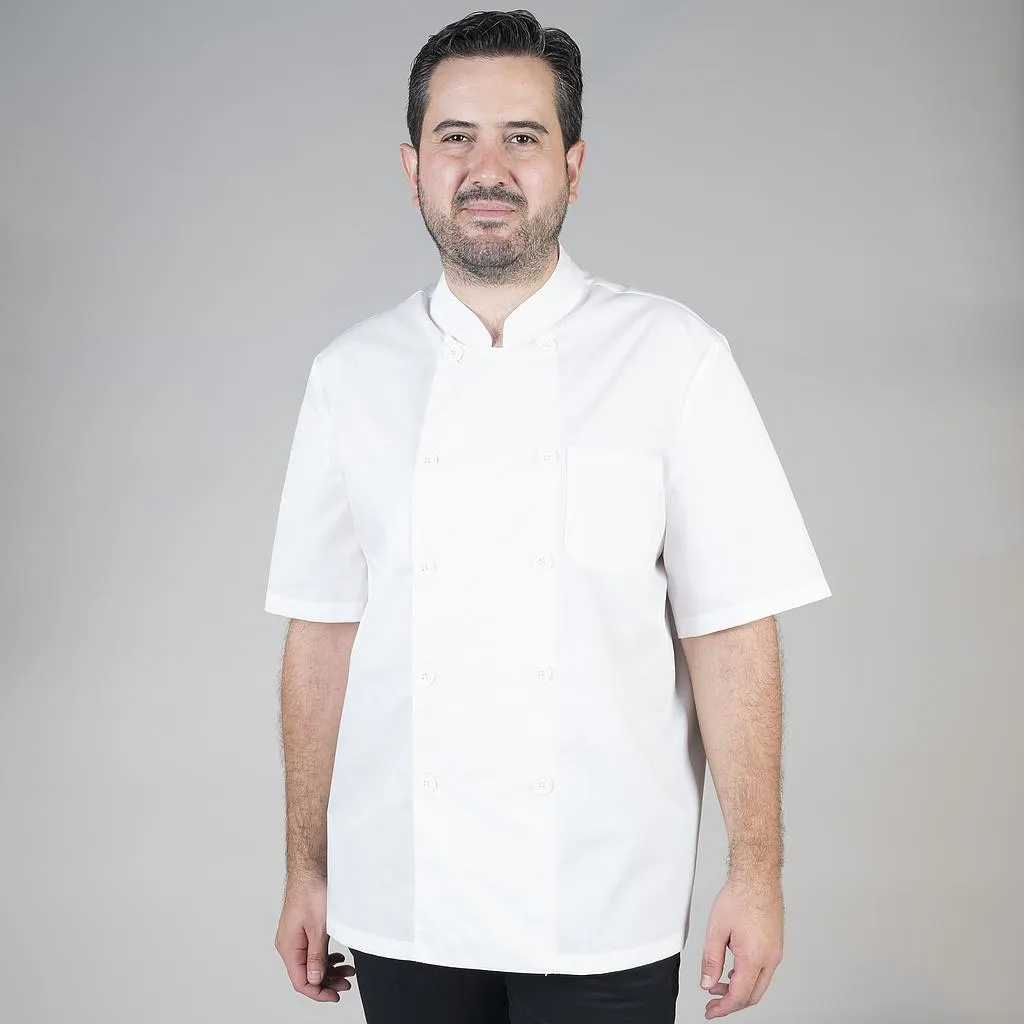 Questa giacca unisex a maniche corte è adatta a cuochi e cuoche di qualsiasi sesso. Le maniche corte consentono una maggiore ventilazione e comfort negli ambienti caldi della cucina.