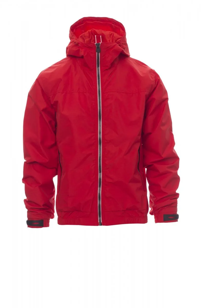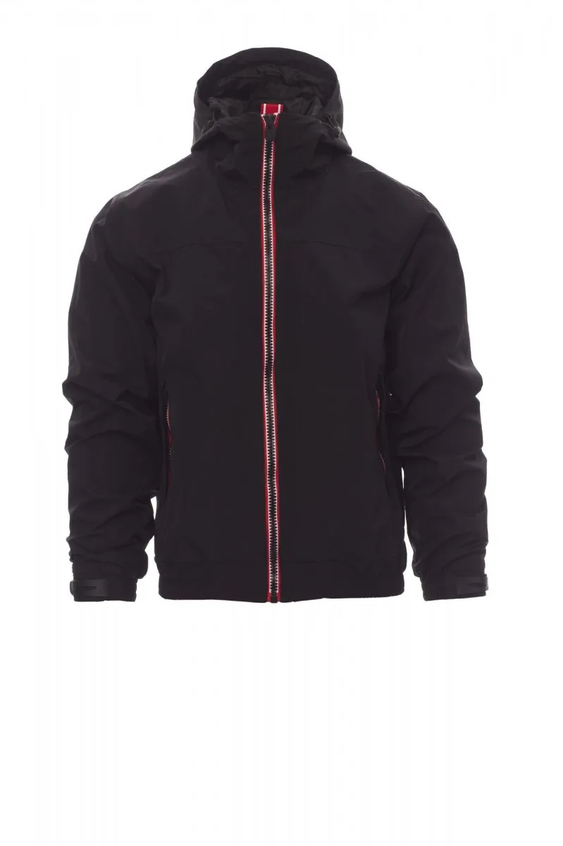 Giubbino da uomo, zip da 8mm in contrasto, cappuccio sagomato con due cuciture e coulisse, elastico in vita, polsini con elastico e stringi polsi gommati di regolazione, due tasche esterne con zip coperta. Interno: non imbottito,retinato, una tasca con cerniera porta smartphone con predisposizone per cavo, zip al petto e schiena per agevolare stampe e ricami.
