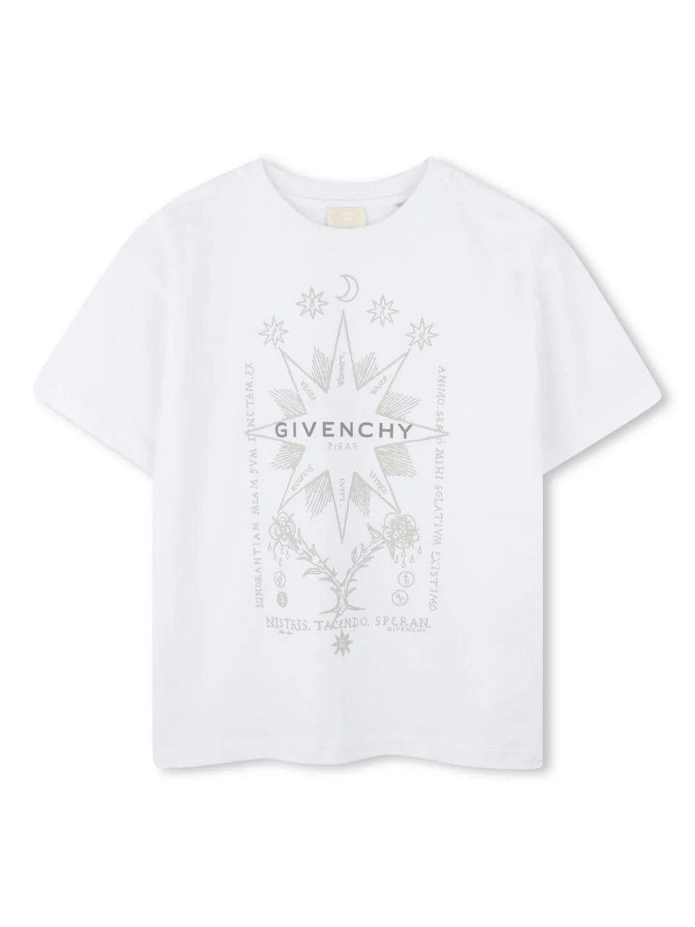 T-shirt con stampa Givenchy Kids, bianco, girocollo, maniche corte, stampa con logo sul davanti, stampa logo sul retro.