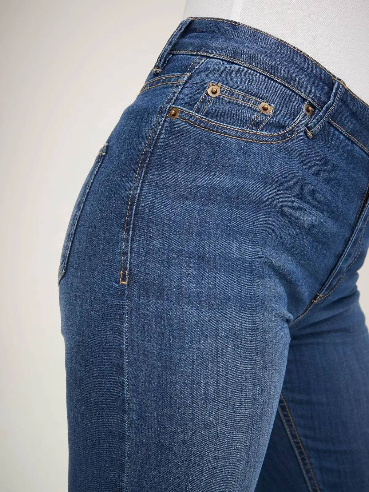 98% cotone 2% elastane. Jeans da donna, vestibilità regular, stretch denim, 5 tasche, passanti per la cintura nello stesso tessuto, bottone e cerniera YKK, piccoli dettagli in metallo ai lati delle tasche, dettagli con cuciture a doppio ago.