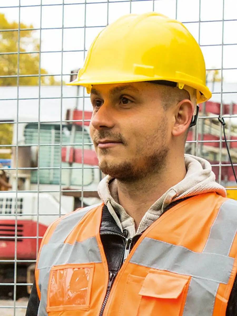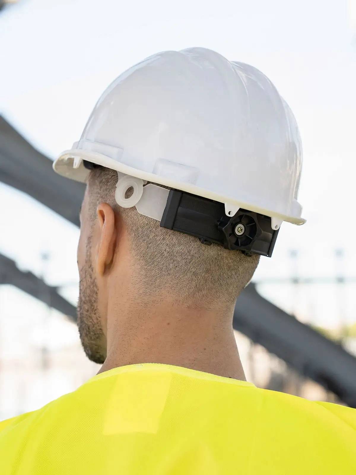 100% polietilene. Casco da cantiere di alta qualità, comodo da indossare, bardatura regolabile a 6 punti e fascia parasudore, chiusura a rotazione, taglia unica, attacchi laterali per dispositivi di protezione dell’udito. Prodotto certificato EN397.