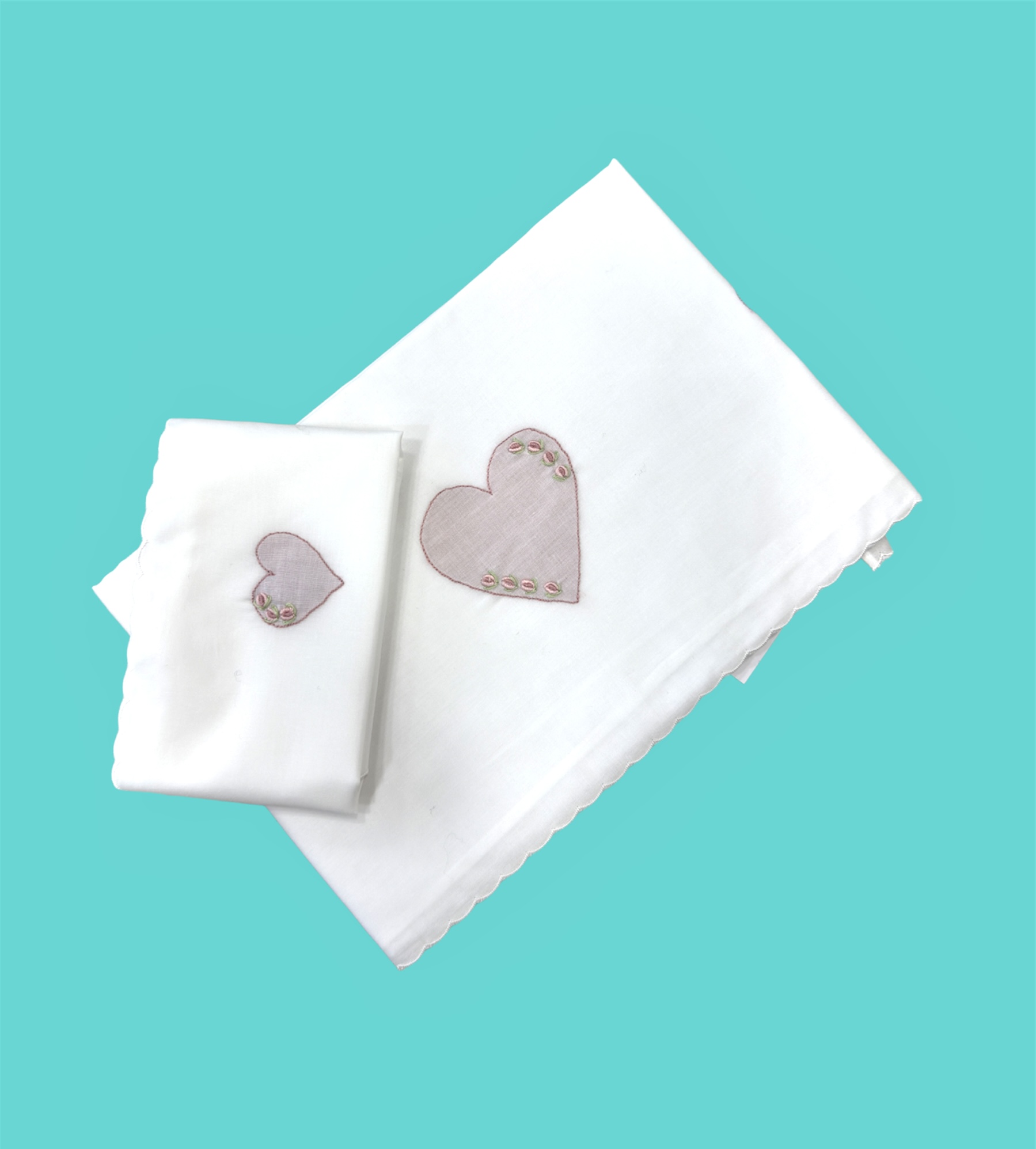 Lenzuolo 2 pz sopra + federa misure 118×88 prodotto made in Italy ricamati a mano 100% batista di cotone