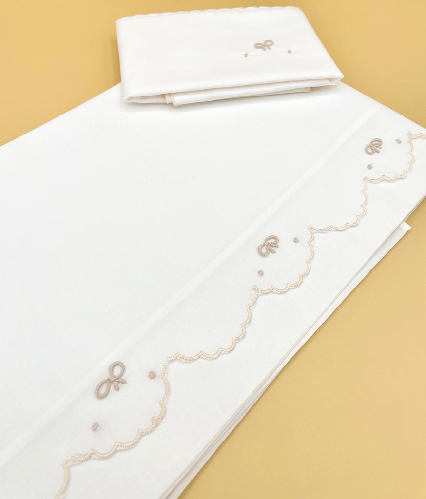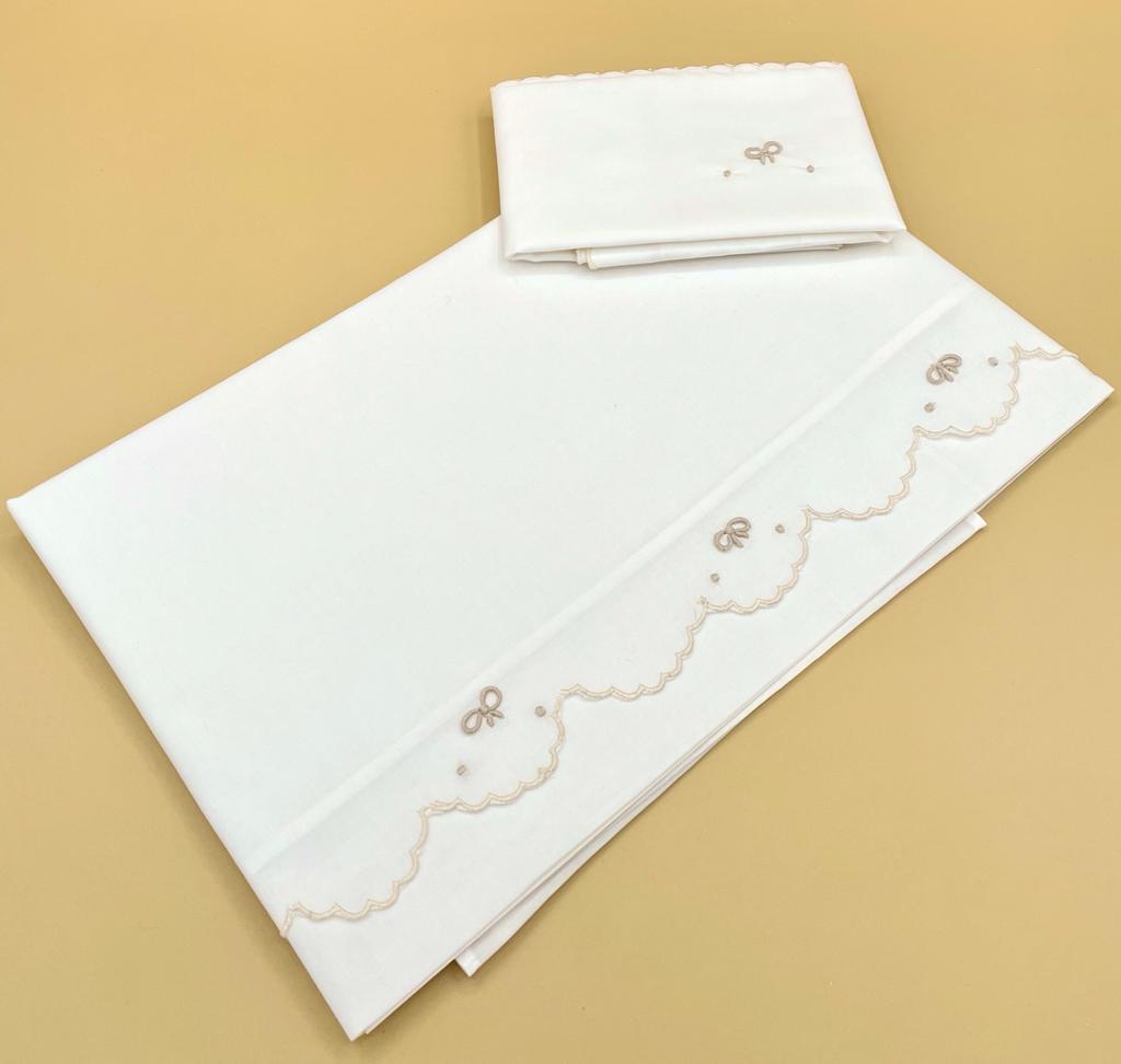 lenzuolo 100% cotone made in italy ricamato a mano set di due pezzi ( sopra e cuscinetto ) misura culla : 118×88