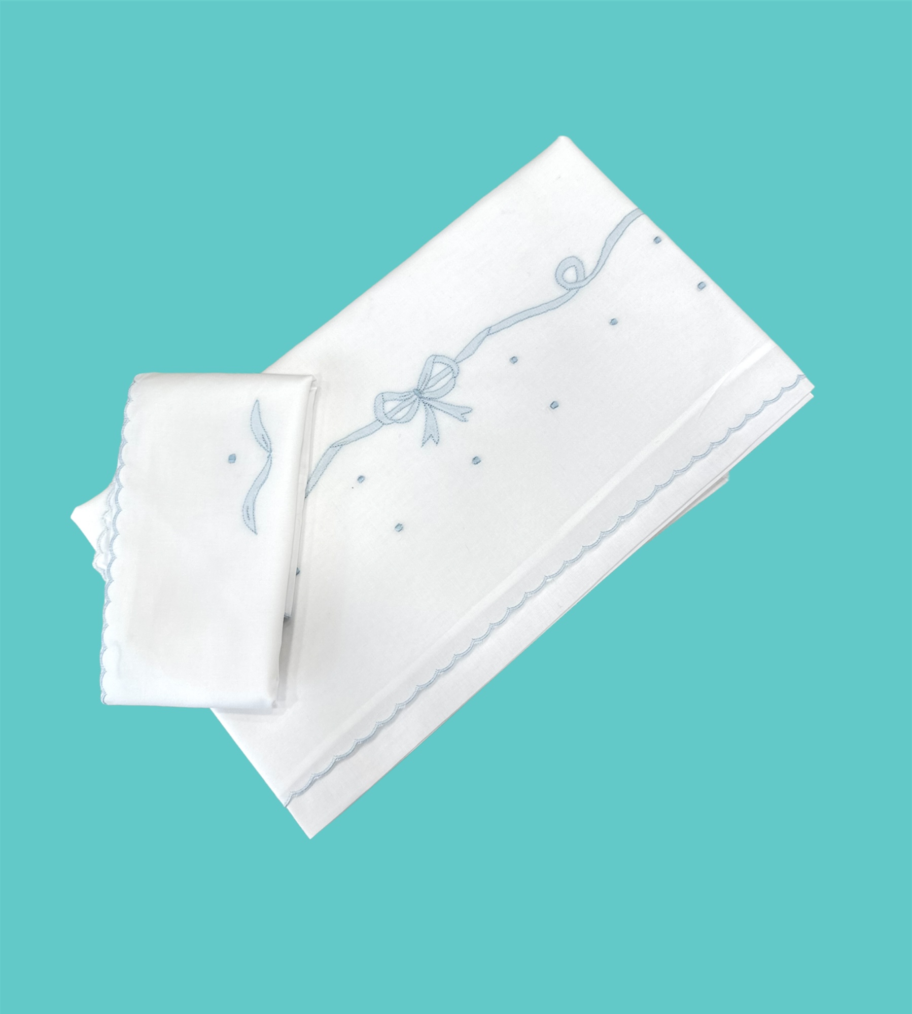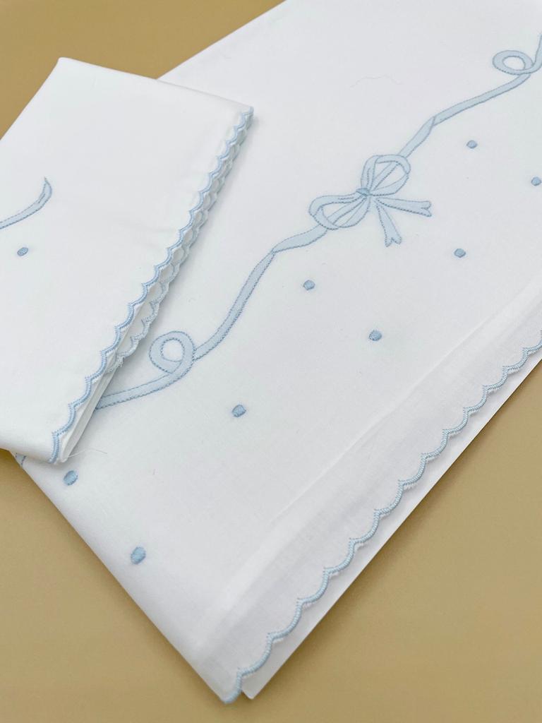 100% cotone 100% made in italy ricamato a mano, set di due pezzi bianco ricamo cielo 118×88