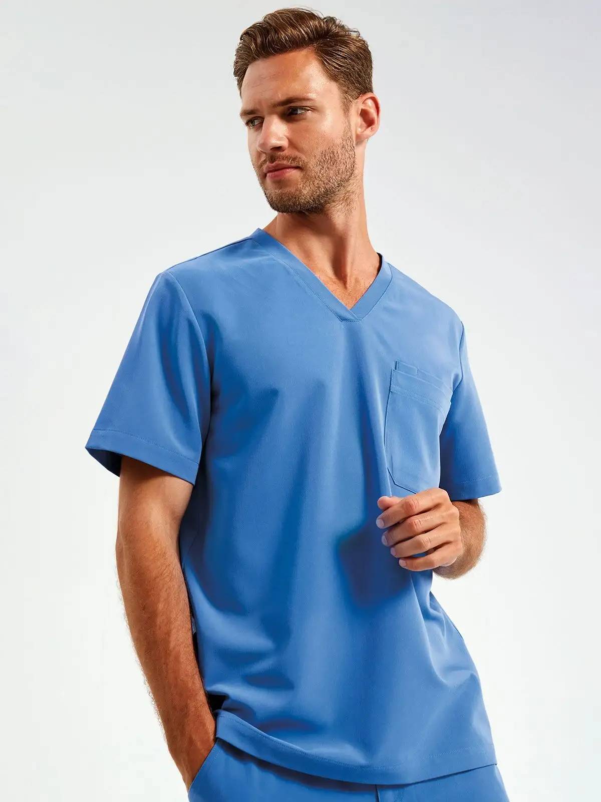 42% poliestere, 33% poliestere riciclato, 19% viscosa,6% elastan. Casacca da uomo in tessuto traspirante elasticizzato in 4 direzioni per assicurare comfort e libertà di movimento durante tutto il giorno, tessuto resistente, ingualcibile e easy care, taglio moderno con riprese posteriori e spacchetti laterali, scollo a V e taschino sul petto a sinistra.
