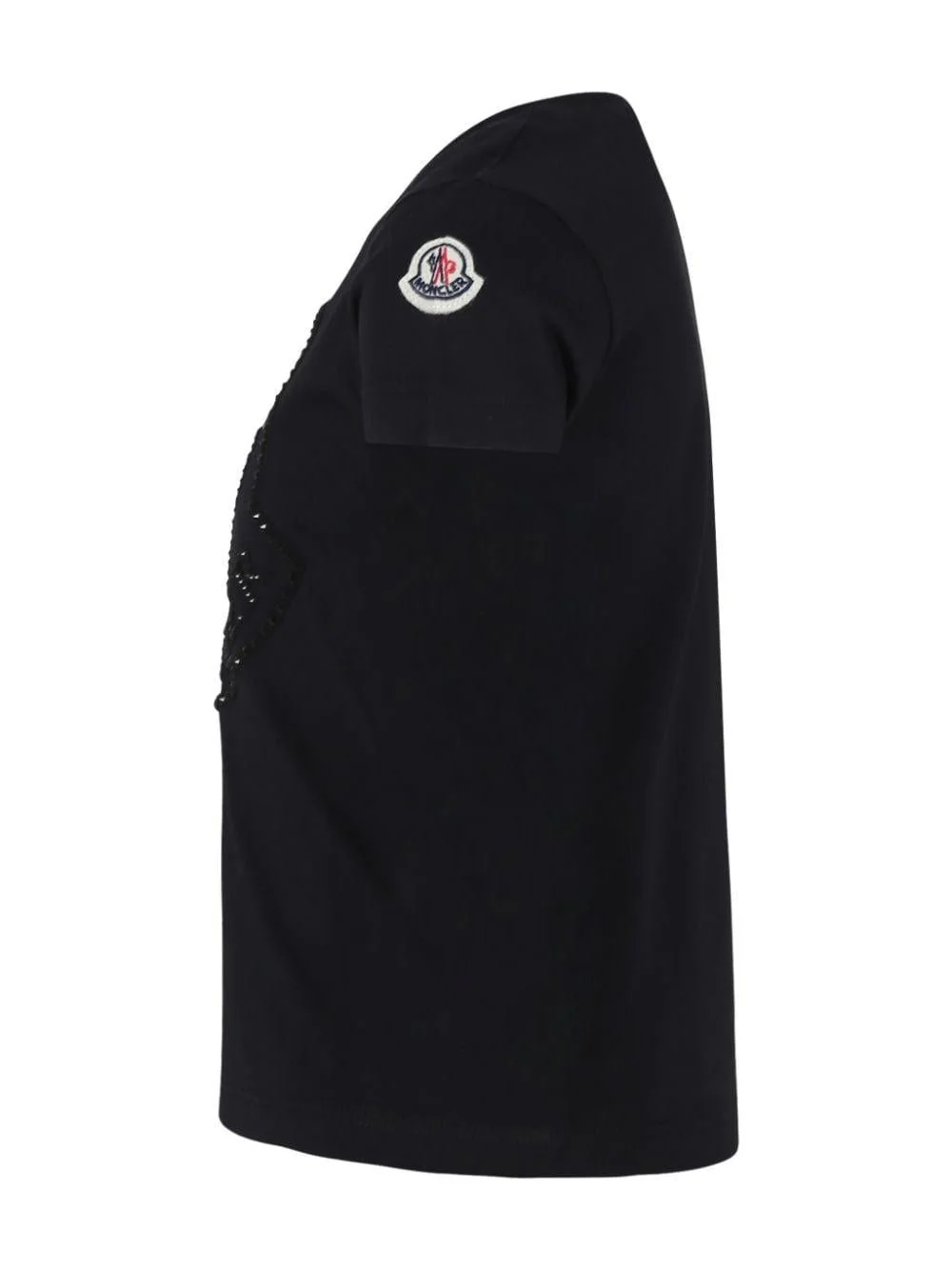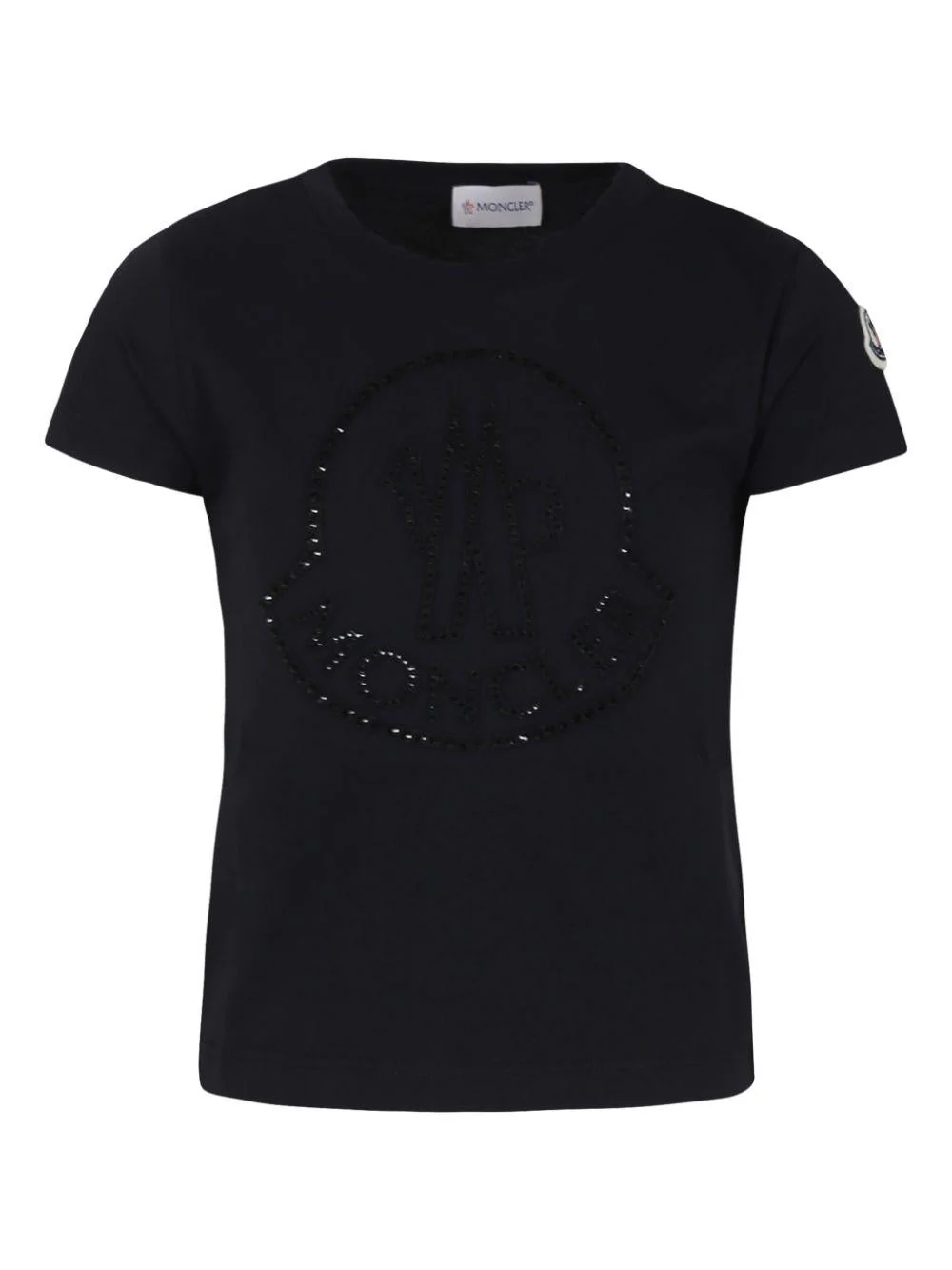 T-shirt con logo Moncler Enfant, nero, maniche corte, girocollo, patch logo sulla manica, logo con strass sul davanti.Composizionecotone 100%