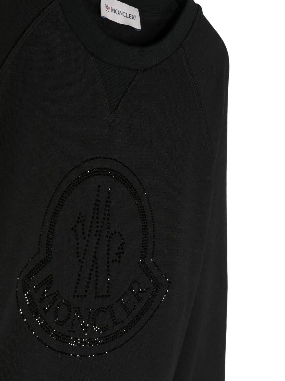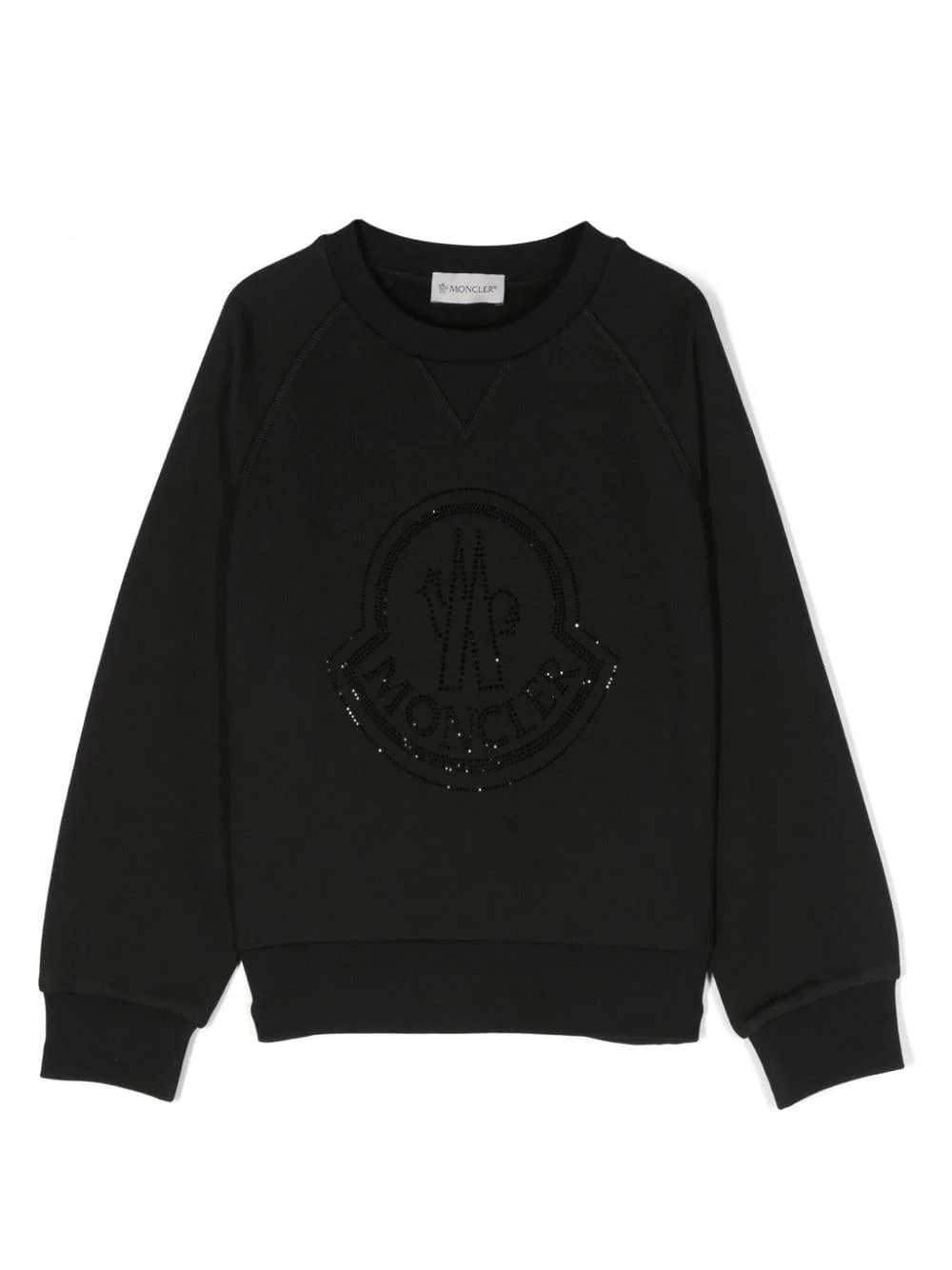 Felpa con logo Moncler kids, girocollo, maxi logo con piccoli diamantini, polsini.