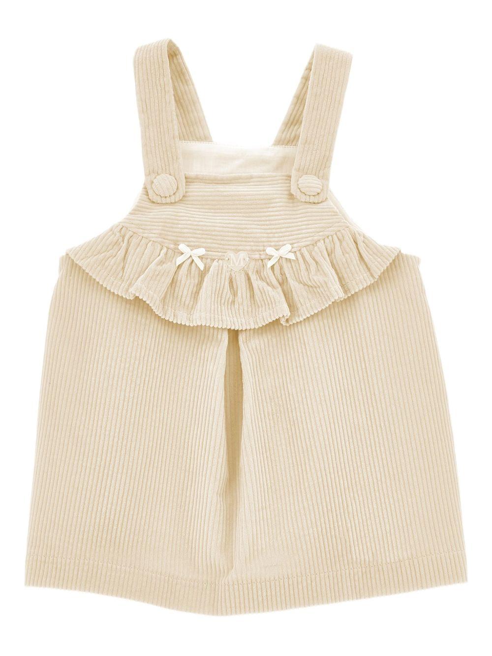 Scamiciata Monnalisa, beige, design a righe, volant sul petto, spalline con chiusura a bottoni. Made in Italy Composizione 100% cotone