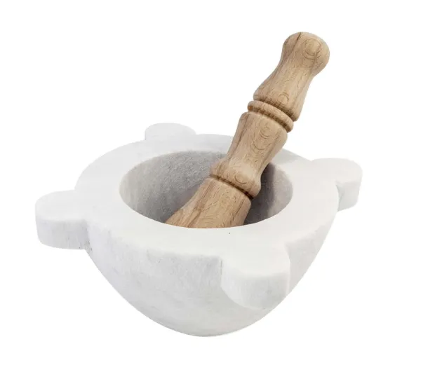 Mortaio Di Marmo Con Pestello Di Legno