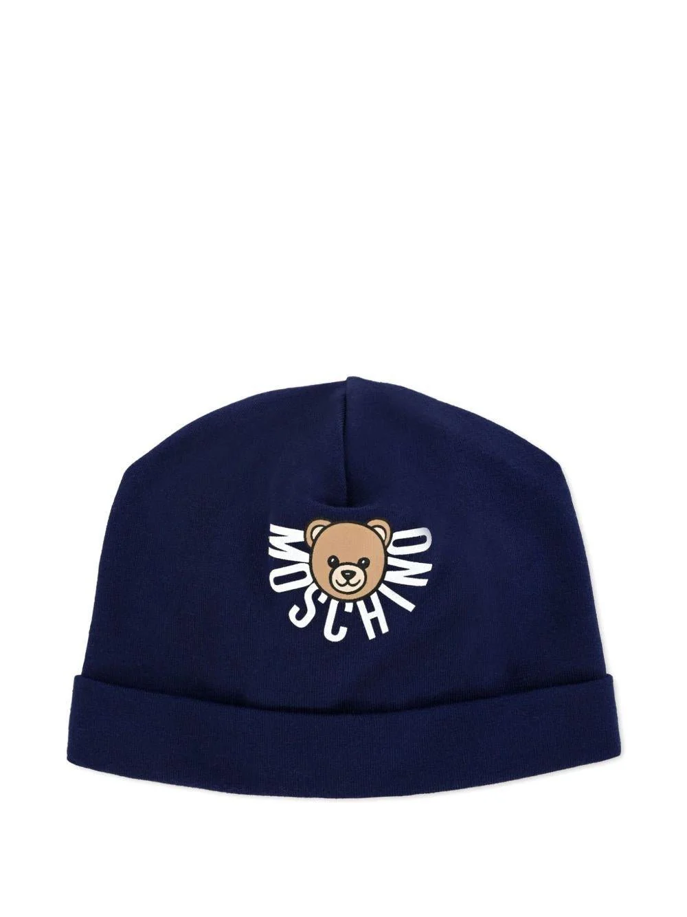 Cappellino Moschino Kids, blu, stampa logo e Teddy sul davanti, risvoltino.Composizionecotone 95%, elastan 5%