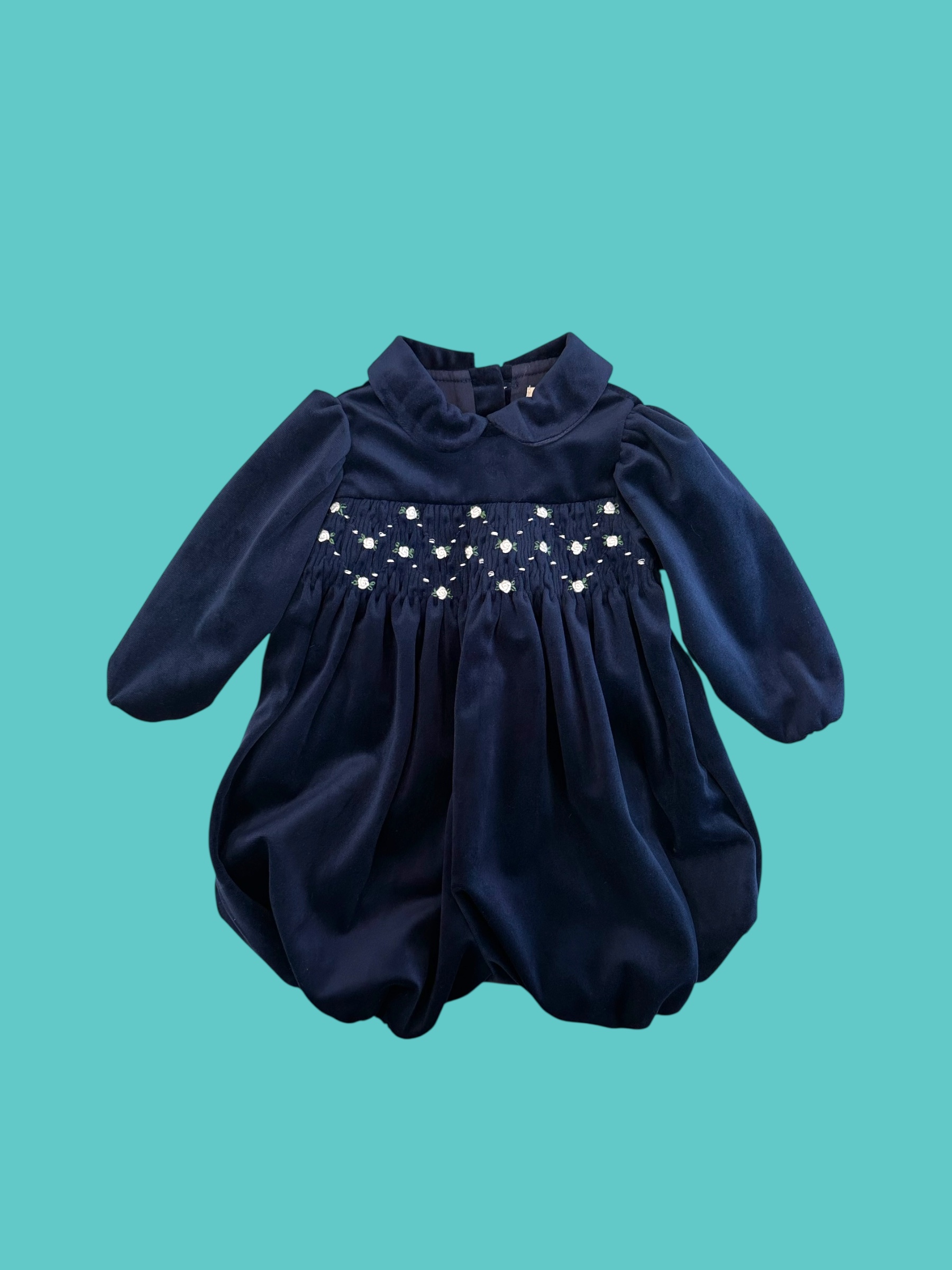 Pagliaccetto in velluto lavorazione con smock prodotto ricamato a mano