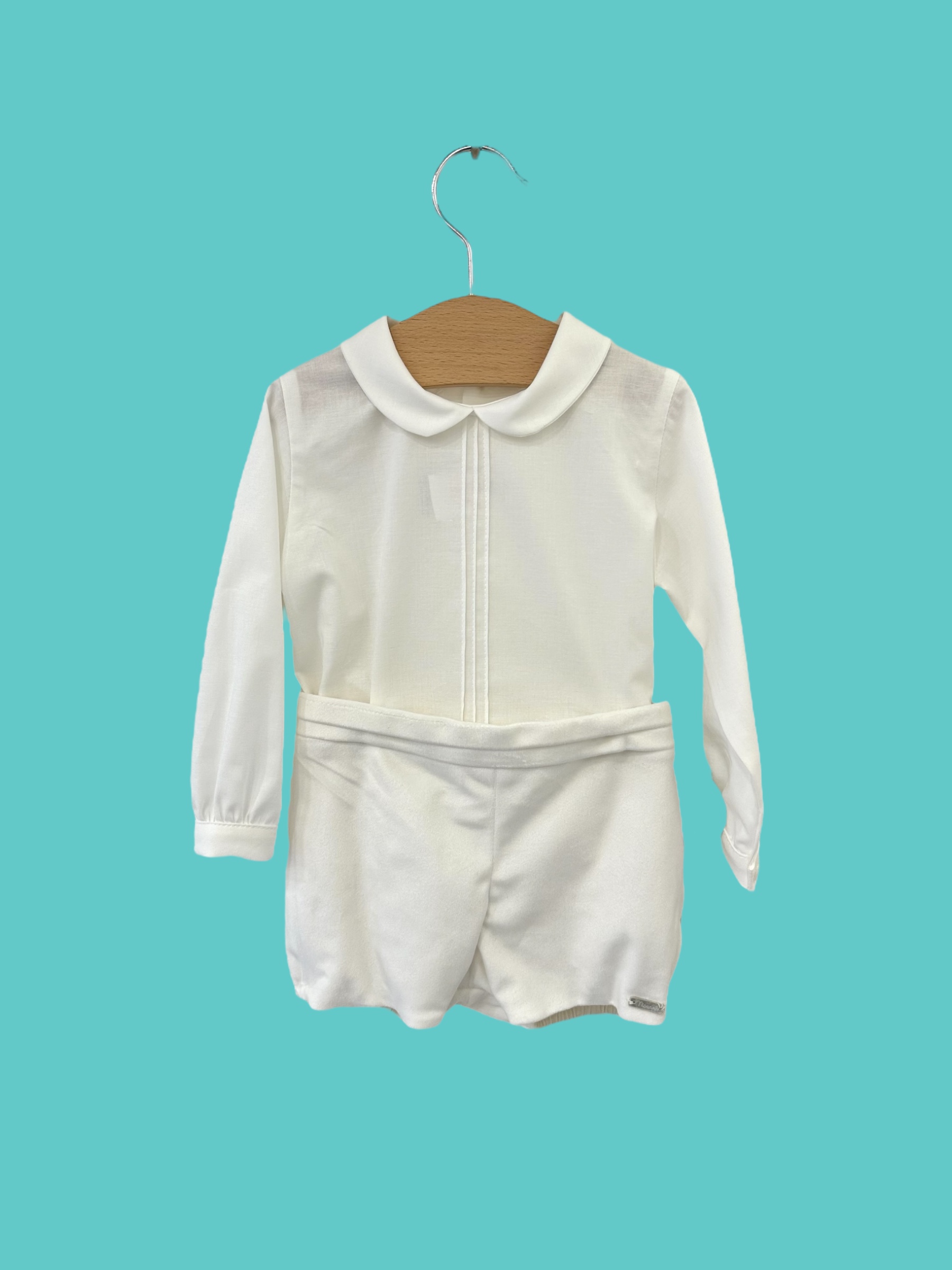 Pagliaccetto camicia in flanella di cotone e bermuda in velluto liscio colore del completo : bianco