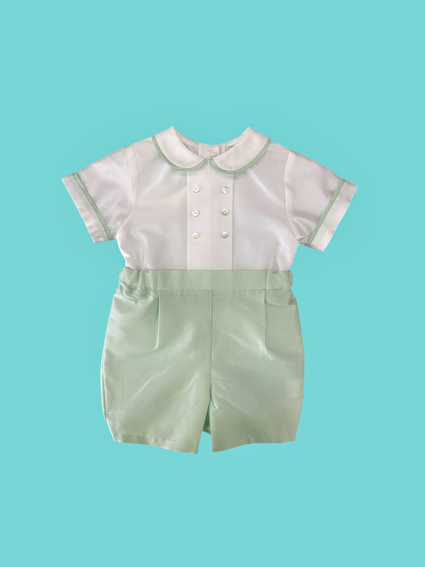 Splendido pagliaccetto realizzato nel tessuto Mella con bottoni foderati.