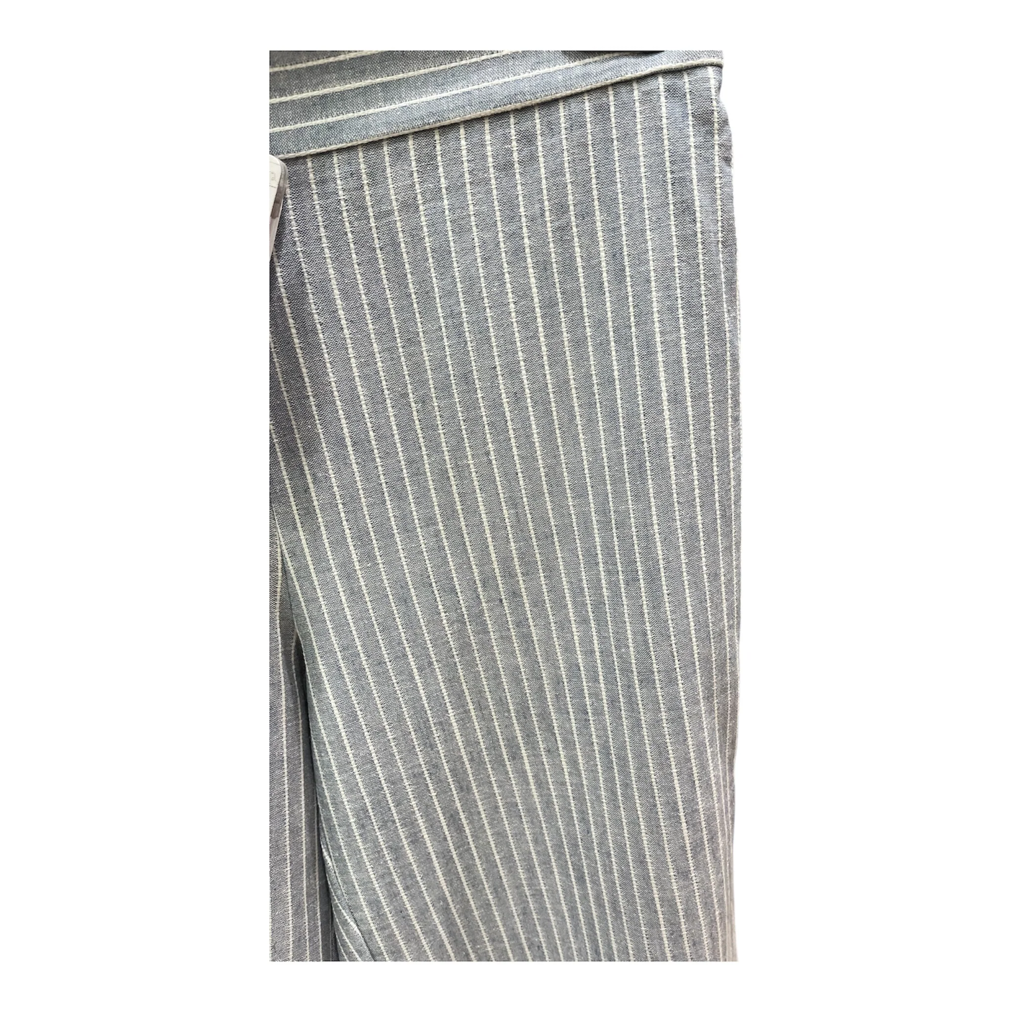 Pantalone a righe sottili tessite in misto lino/Lyocell