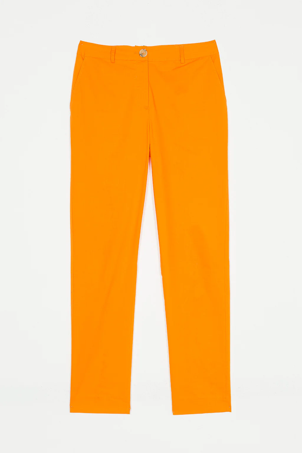 Pantalone a sigaretta in cotone leggerissimo. Chiusura con zip e bottone, tasche laterali e finto taschino sul retro Tessuto: 100% Cotone Colore: Arancio