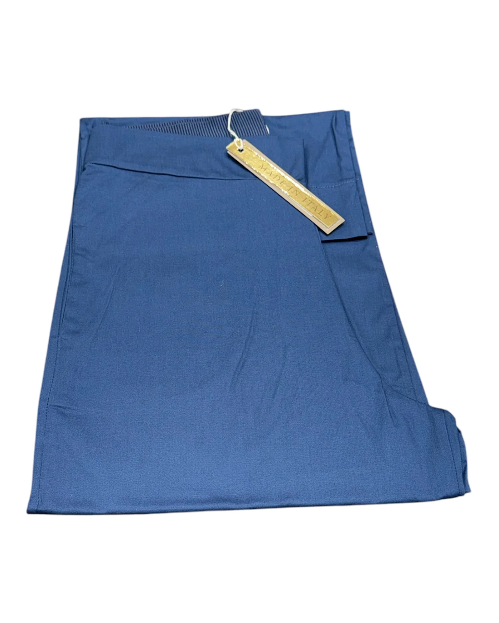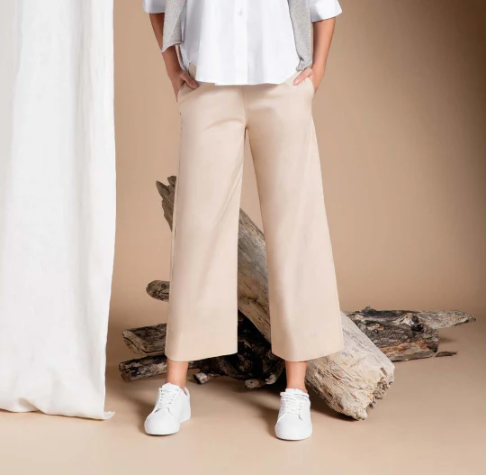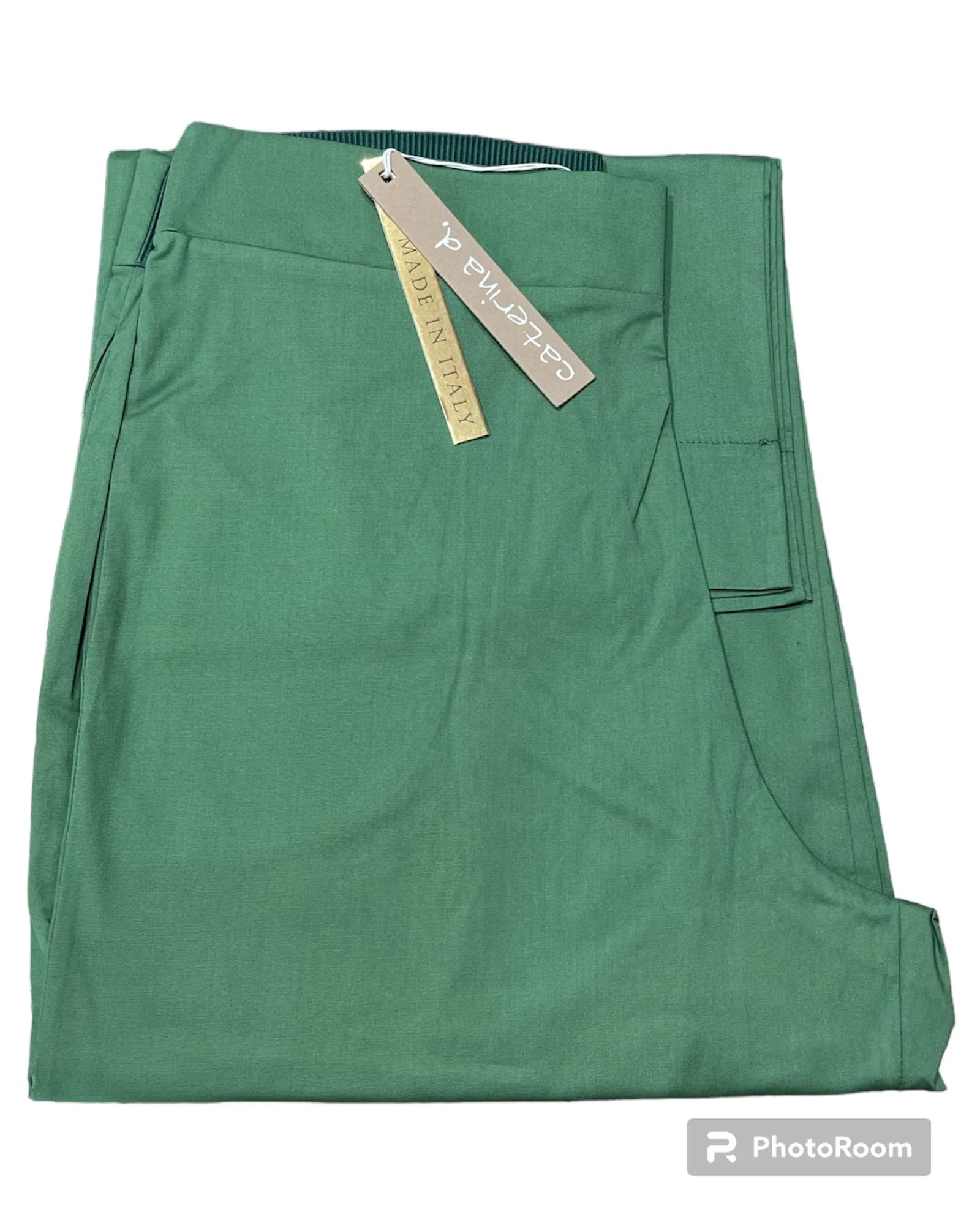 Morbidi pantaloni per uscire in comodità ma senza rinunciare allo stile. Hanno una linea ampia, lunghezza caviglia, bustino rigido davanti ed elastico largo a vista sul retro, tasche laterali a filo. Colore: Bianco, blu , denim , verde TESSUTO: 97% Cotone 3% Elastan Made in Italy