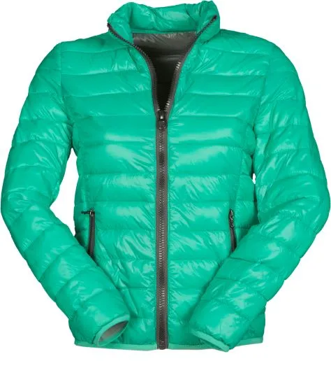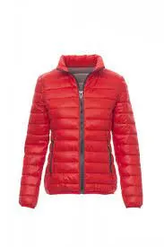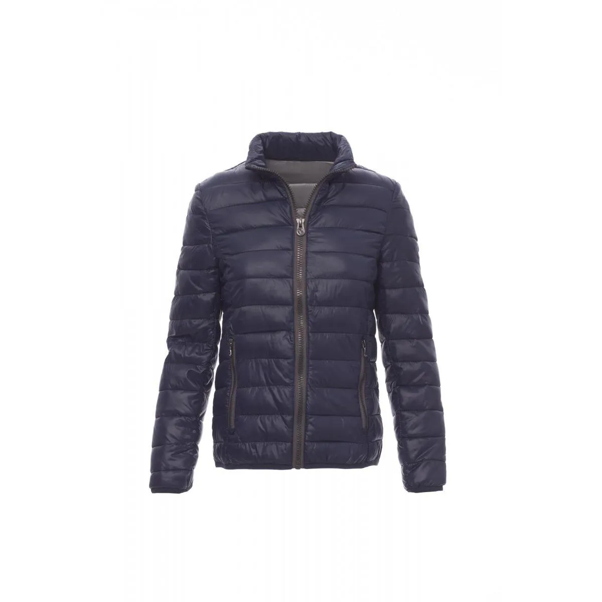 Giubbino/piumino ergonomico da donna, zip SBS 8mm in plastica con cursore in metallo, fine bordino ai polsi e in vita, due tasche esterne. Interno: imbottito di poliestere effetto piuma, tre tasche. Composizione: 420T 100% NYLON Peso: 38 GR/MQ Misure: S-M-L-XL