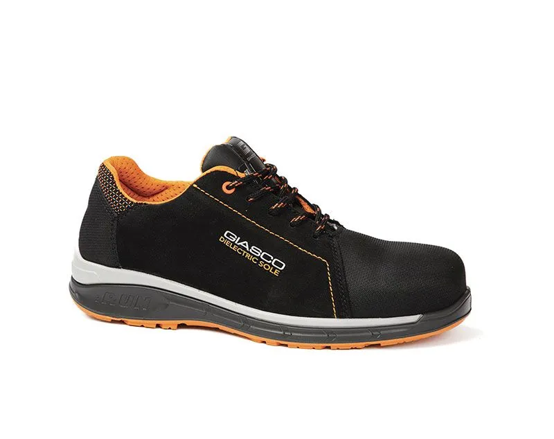 Calzatura di sicurezza bassa, in pelle groppone scamosciata e pelle antigraffio WRU spessore 1,8-2,0 mm.
