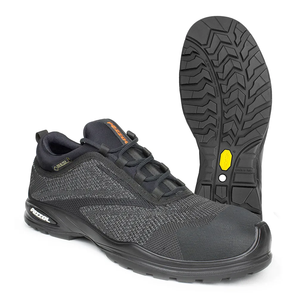 Un nuovo concetto di prodotto fondato sulla tecnologia X-Weave con applicazione di film protettivo in poliuretano termoplastico. La tomaia è realizzata interamente in nylon con zone di tessitura differenziate e giustapposte che garantiscono massima traspirabilità ed estrema resistenza all’abrasione. La speciale membrana elastica GORE-TEX Stretch Safety Footwear, estremamente traspirante e idrorepellente, offre un notevole comfort ed un’elevata resistenza alla penetrazione dell’acqua, favorendo il naturale processo di termoregolazione e mantenendo i piedi asciutti.Suola bicomponente Tyre Pu-Gomma Vibram®: intersuola in poliuretano ad iniezione diretta Esolight 1.0 e battistrada in gomma Vibram®. Il disegno S-LINE agevola il movimento durante la deambulazione mentre le tassellature ottimizzate assicurano leggerezza e durabilità costanti. Puntale in fibra di vetro PZ88 ed inserto resistente alla perforazione TXZERO in multistrato tessile: massima protezione, leggerezza e flessibilità.