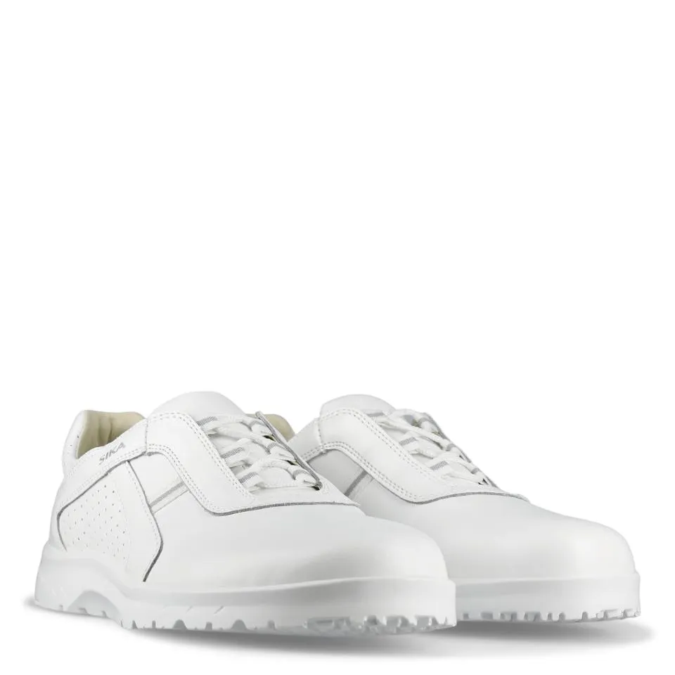 Scarpa leggera e comoda, realizzata in pelle Permair® traspirante e resistente. Suola antiscivolo e ammortizzante. Il design della suola garantisce stabilità e riduce al minimo il rischio di infortuni da torsione. La soletta è antibatterica, traspirante e ad asciugatura rapida. Fodera in microfibra traspirante, resistente e assorbente. Disponibile in bianco e nero. Norma CE EN ISO 20347:2022 Certificazione CE O1,FO Serie Fusione Suola esterna Suola esterna in PU antiscivolo e ammortizzante Superiore Pelle Permair® traspirante, resistente all’acqua e durevole. Con perforazioni per una maggiore traspirabilità. Liner Fodera in microfibra traspirante, resistente e assorbente del sudore Suola intarsiata/Soletta Soletta interna antistatica…