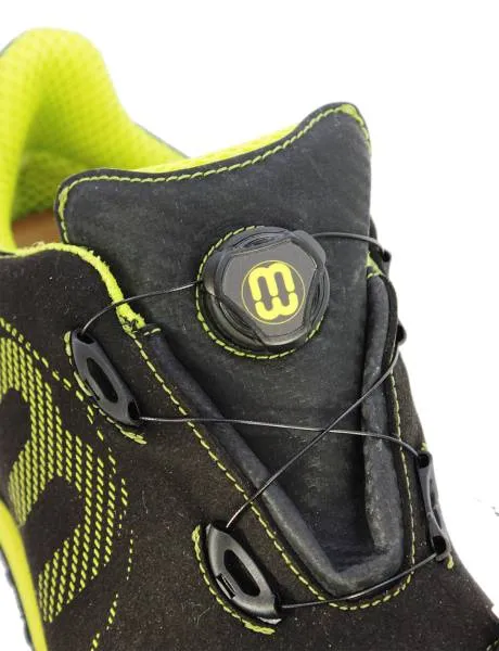 Scarpa bassa in microfibra con fodera traspirante. Suola Vibram® in gomma con zepppa micro. Chiusura con rotore con filo in acciaio. UNI EN ISO 20345:2012 S3 A CI E HRO FO SRA