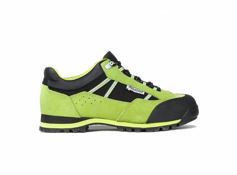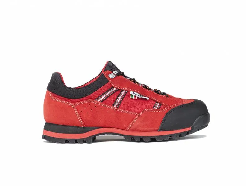 Trekking basso in pelle scamosciato con inserti in cordura; Fodera AQUASTOP impermeabile e traspirante; Suola in gomma VIBRAM® microleggera. Colori Verde/Nero – Rosso/Nero Taglie 36-48