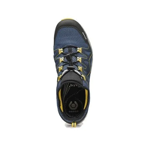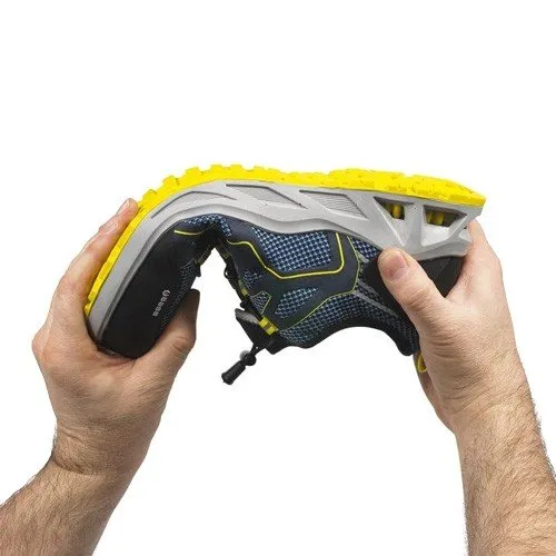 - Tomaia in tessuto tecnico traspirante, leggero, senza cuciture, resistente allo strappo +90% rispetto alla norma ISO 20345:2011