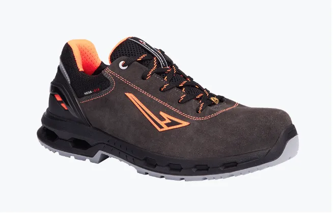 La sneaker antinfortunistica bassa S1PS Hexa G15 S1pS ESD unisce innovazione e funzionalità con la nuova suola Hexalight, offrendo leggerezza e comfort superiori. Il battistrada in poliuretano bi-densità garantisce aderenza affidabile. L’intersuola con fori conici riduce il peso, ottimizza l’ammortizzazione e facilita la rimozione dei detriti. La tomaia in crosta scamosciata e nylon, con lamina antiperforazione in materiale composito e puntale in alluminio, assicura comodità e sicurezza. Eco-sostenibile e progettata per ridurre lo spreco di materiali, è ideale per officine, cantieri e ambienti lavorativi impegnativi, offrendo un equilibrio tra sicurezza e rispetto per l’ambiente.