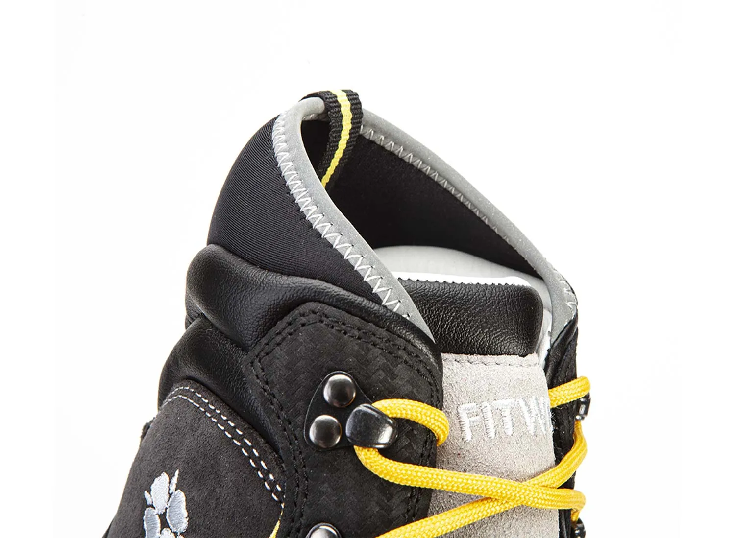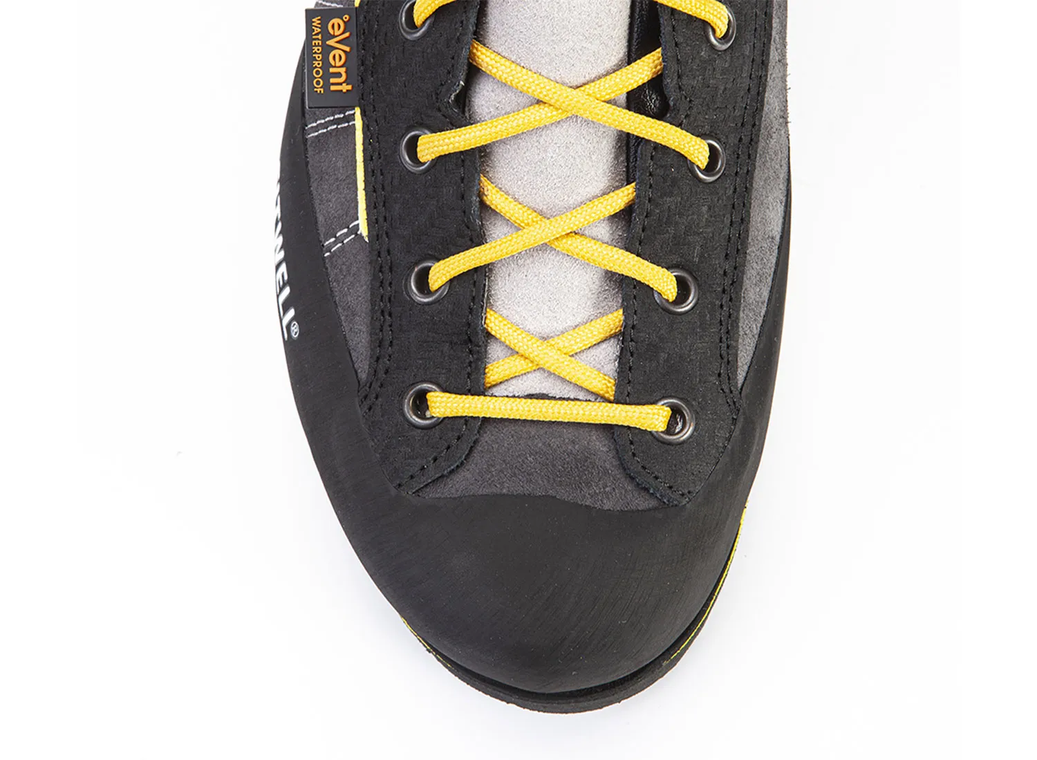 Tomaia in pelle scamosciata con trattamento idrorepellente e rinforzi in pelle, finitura in carbonio ad alte proprietà antiabrasive. Isolamento termico e asciugatura rapida della fodera interna in materiale riciclato, accoppiata a membrana waterproof.Collarino con riporto in Lycra® per proteggere ed evitare intrusione di materiale estraneo. Punta e tacco in gomma sp. 1,6 smussato ai bordi di tenuta e protezione. Fascione posteriore fa da tirante sulla tomaia per un buon bloccaggiodel tallone. Zeppa composta da intersuola in PU ad alta densità e tacco shock absorber a bassa densità, mix ottimale per staibilità e ammortizzamento. Suola in gomma con mescola personalizzata ad alte prestazioni, trazione eccellente su superfici asciutte e bagnate.