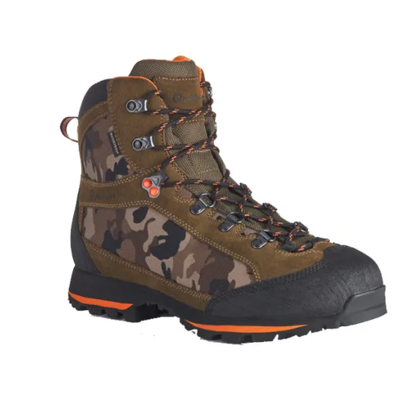 Scarpone da caccia impermeabile Faloria Camo mid, progettato per soddisfare le esigenze degli utilizzatori più esigenti. Questo scarpone facilita l’avanzamento attraverso boschi e sottoboschi difficili, offrendo resistenza a urti e abrasioni, nonché un’eccellente protezione e comfort. La struttura semi-rigida del sottopiede lo rende adatto anche a terreni collinosi e montuosi. Dotato di una suola Vibram Curcuma, questo scarpone include un paraurti per la protezione del piede e un grip superiore, testato sulle vette più alte del mondo. La sua composizione rimane performante anche a temperature estremamente basse, con una mescola più solida per garantire il massimo supporto e durata.