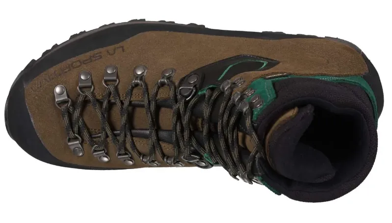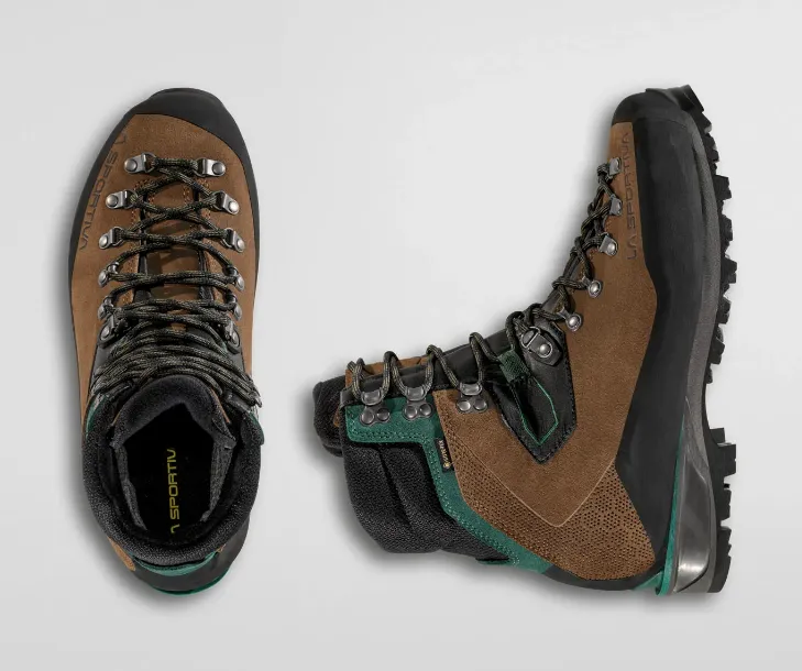 Scarpone in pelle robusto e dal look classico, consigliato per alpinismo tradizionale e trekking impegnativo dove può essere necessario l’utilizzo del rampone.