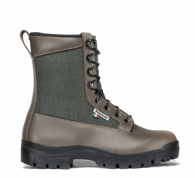 Stivaletto in pelle pieno fiore con inserti in nabuk; Fodera AQUASTOP impermeabile e traspirante; Suola in gomma VIBRAM®. Colori Verde oliva Taglie 37-48