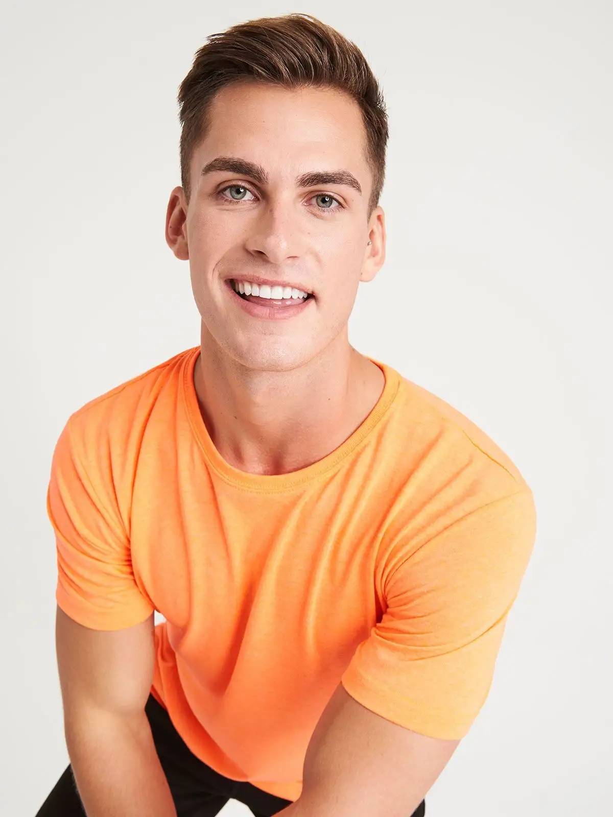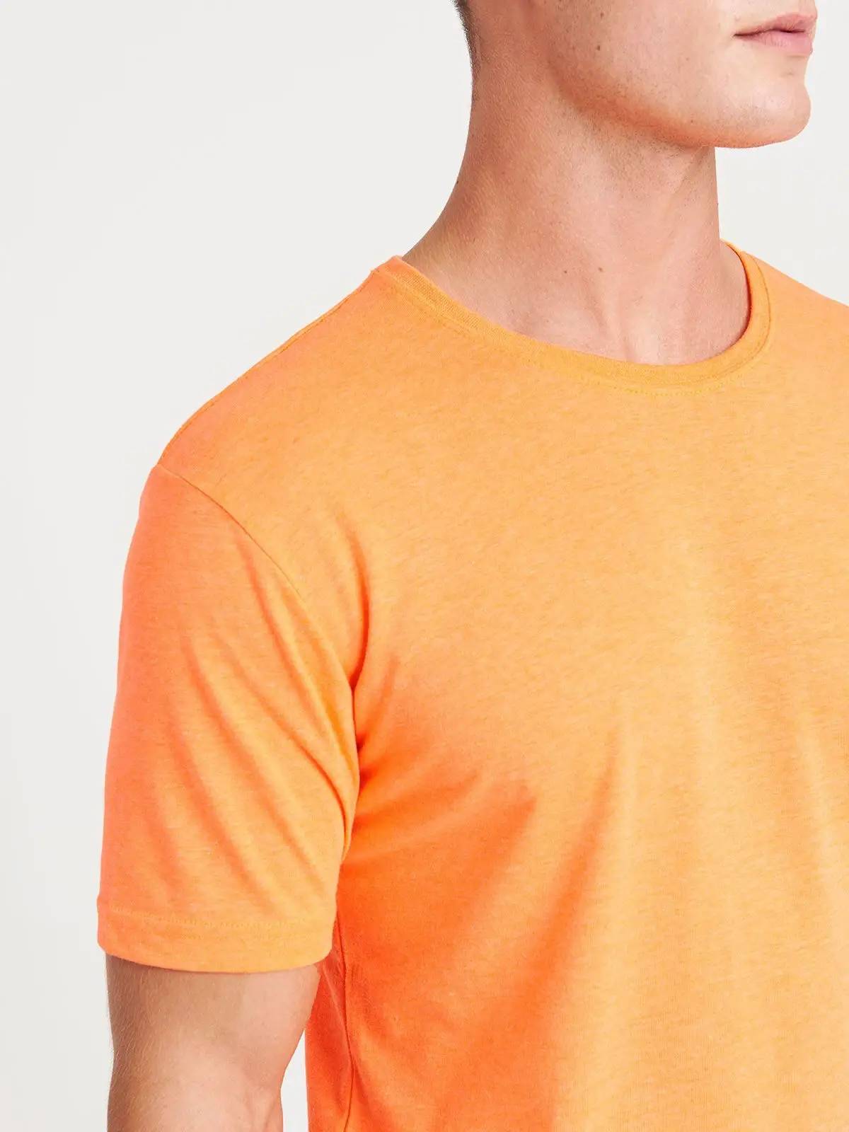 50% poliestere, 25% viscosa, 25% cotone. T-shirt a maniche corte con girocollo a costine, look moderno, tessuto tri-blend, nastro di rinforzo sul colletto, doppie cuciture su maniche e orlo, superficie eccellente per stampa e ricamo. Colour coded black for Unisex. Una sola etichetta con la taglia, perfetta per il rebranding.