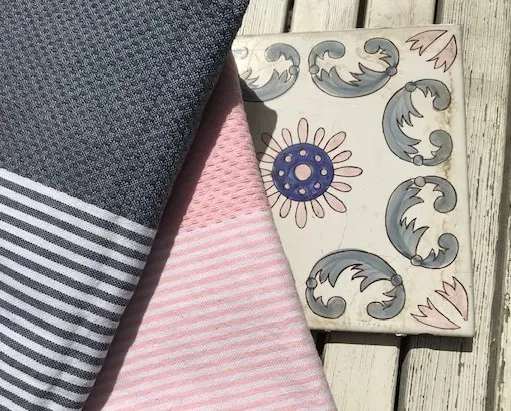 TELO MARE FOUTA MYKONOS 20,00 € Telo mare fouta lavorato a nido d’ape, misura mt. 2×1 frange comprese. 100% cotone , peso gr. 400 ca.