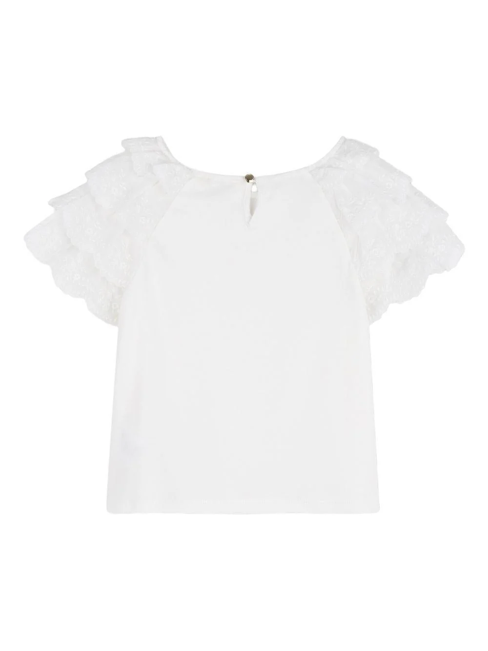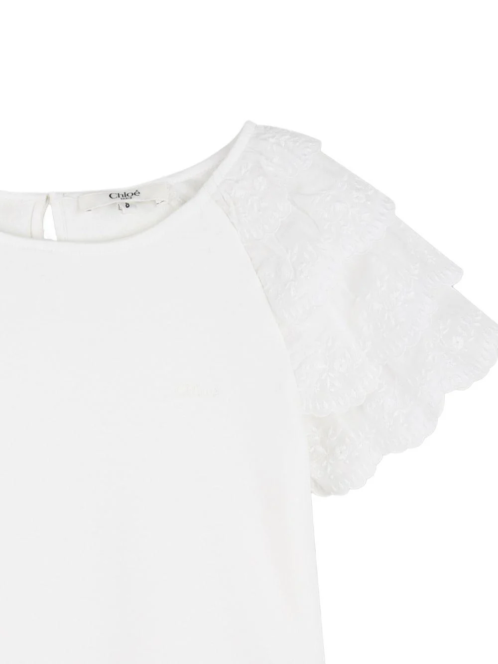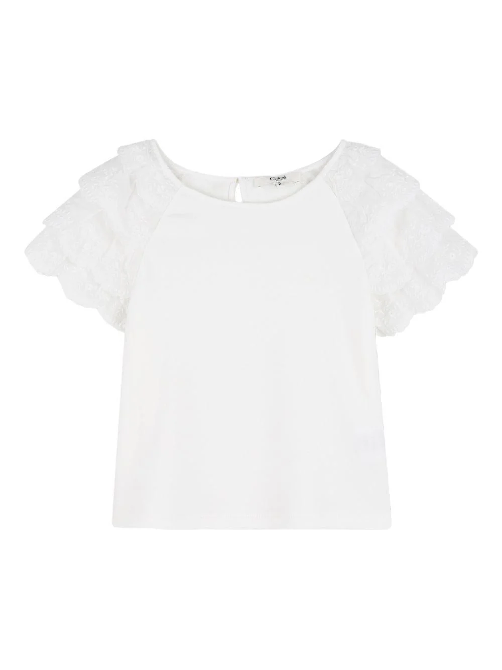 Top con rouches Chloé Kids, bianco, scollo rotondo, maniche corte increspate, chiusura a goccia sul retro.