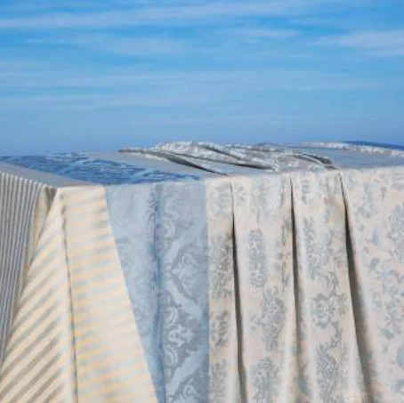 Tovaglia a Blocchi di Colore e Tessitura dell’ Arcolaio Tessuto Giocato su piu’ Trame e piu’ Colori 50% Lino e 50% Cotone Egiziano Dimensione: Rettangolare x 8 – 170 x 230 cm Made in Italy