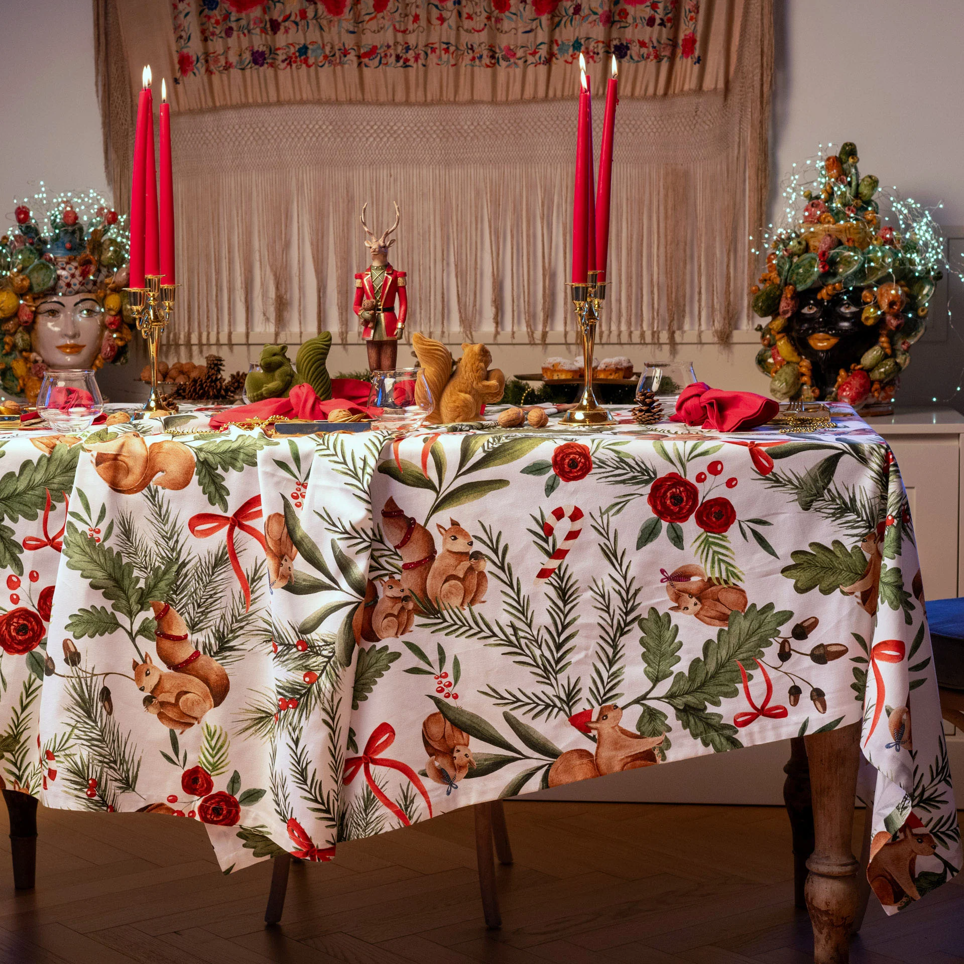 Celebra il Natale con la nostra Tovaglia Natalizia Nutnook! Realizzata in morbido cotone, presenta un adorabile disegno di scoiattoli che porterà un’atmosfera festosa e accogliente alla tua tavola. Aggiungi un tocco di allegria alle tue feste con Nutnook!