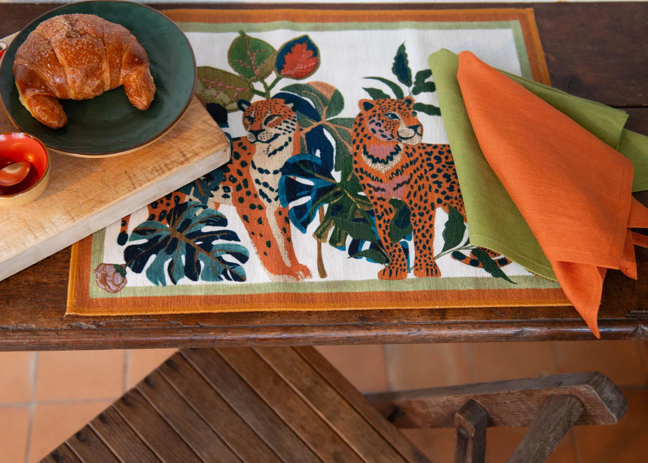 La tovaglietta americana LEOLEAF è una piccola scena di teatro botanico: elegante, intensa, vagamente selvaggia. Ogni pasto diventa un momento rubato alla routine, un rito che evoca il calore di terre lontane e il mistero della natura incontaminata. I colori caldi si mescolano tra le foglie tropicali e i leopardi. Perfetta per chi desidera iniziare la giornata con carattere, stile e un pizzico d’avventura.