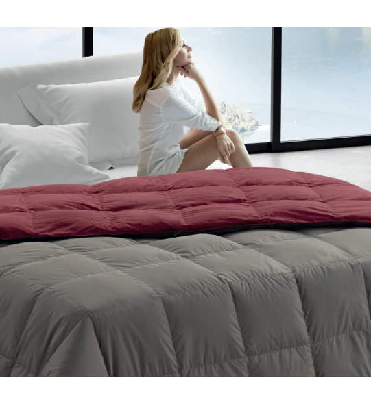 Dimensioni disponibili:Matrimoniale Standard 260 X 270 Imbottitura: 100 Silver -> Piumino Oca 100%; Piumino Oca Bianca Vergine 100%Peso: gr. 200 /mqStagione : WarmTessuto : Poliestere-CotoneTrapuntato a cassettoni Made in Italy