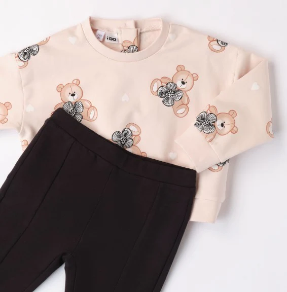 Questa tuta bambina garzata con orsetti è perfetta per le occasioni casual o sportive. Realizzata con una stampa di orsetti sulla felpa e un pantalone comodo a contrasto, questa tuta è sia elegante che confortevole. Ideale per le bimbe alla moda!