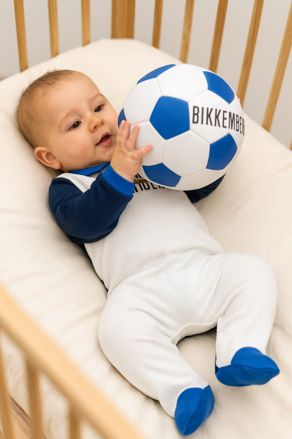 Completo neonato blu con jacquard sul davanti 3 colori e cappello coordinato