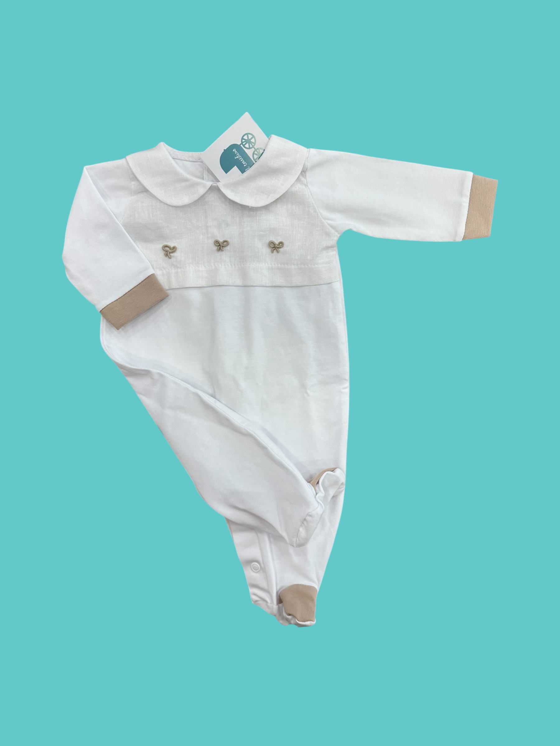 tutina bianca ricamo blu 100% cotone prodotto ricamato a mano made in Italy