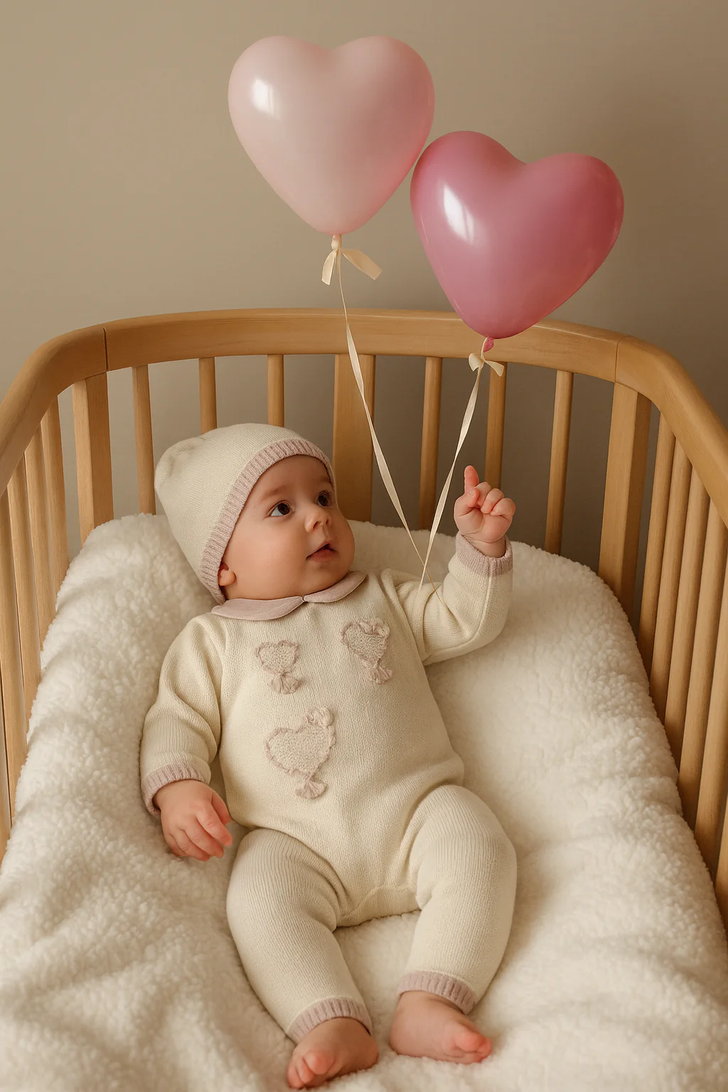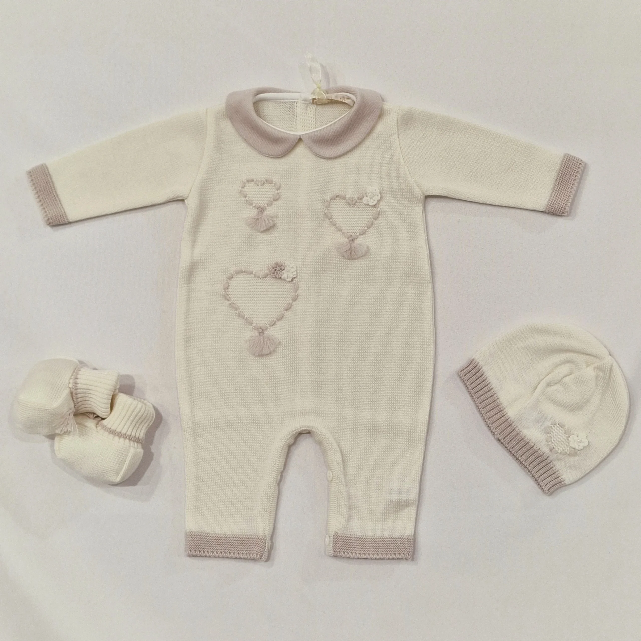 Tutina neonata 100% lana con cuoricini BIMBALO’