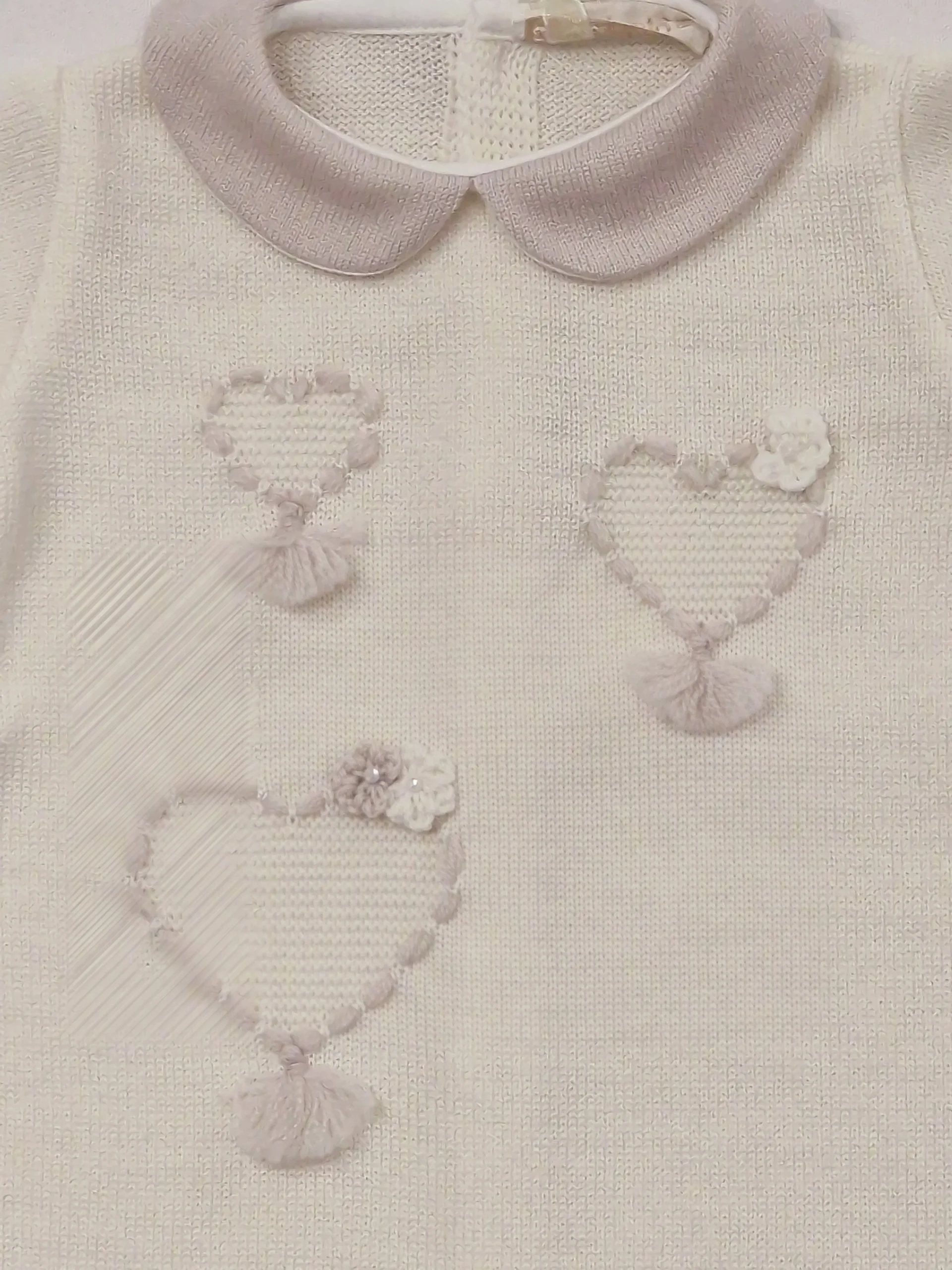 Questa tutina per neonata, realizzato al 100% in lana di alta qualità, garantisce calore e comfort delicato sulla pelle sensibile dei più piccoli. I cuoricini applicati con piccoli laccetti aggiungono un tocco di dolcezza e stile, rendendo il capo perfetto per le giornate più fresche. Ideale per mantenere la tua bambina avvolta in morbidezza e protezione naturale.