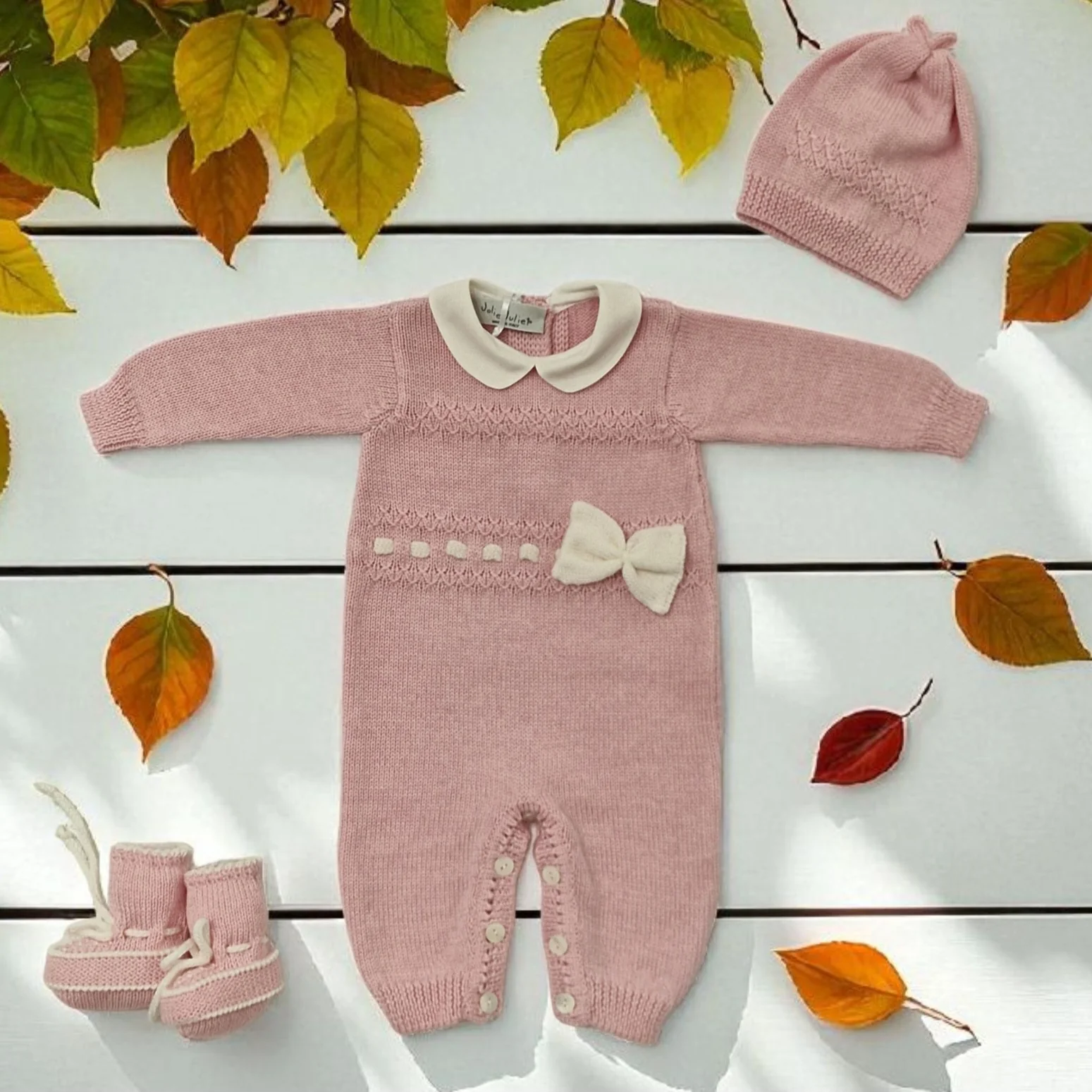 Tutina neonata 100% lana con fiocchetto